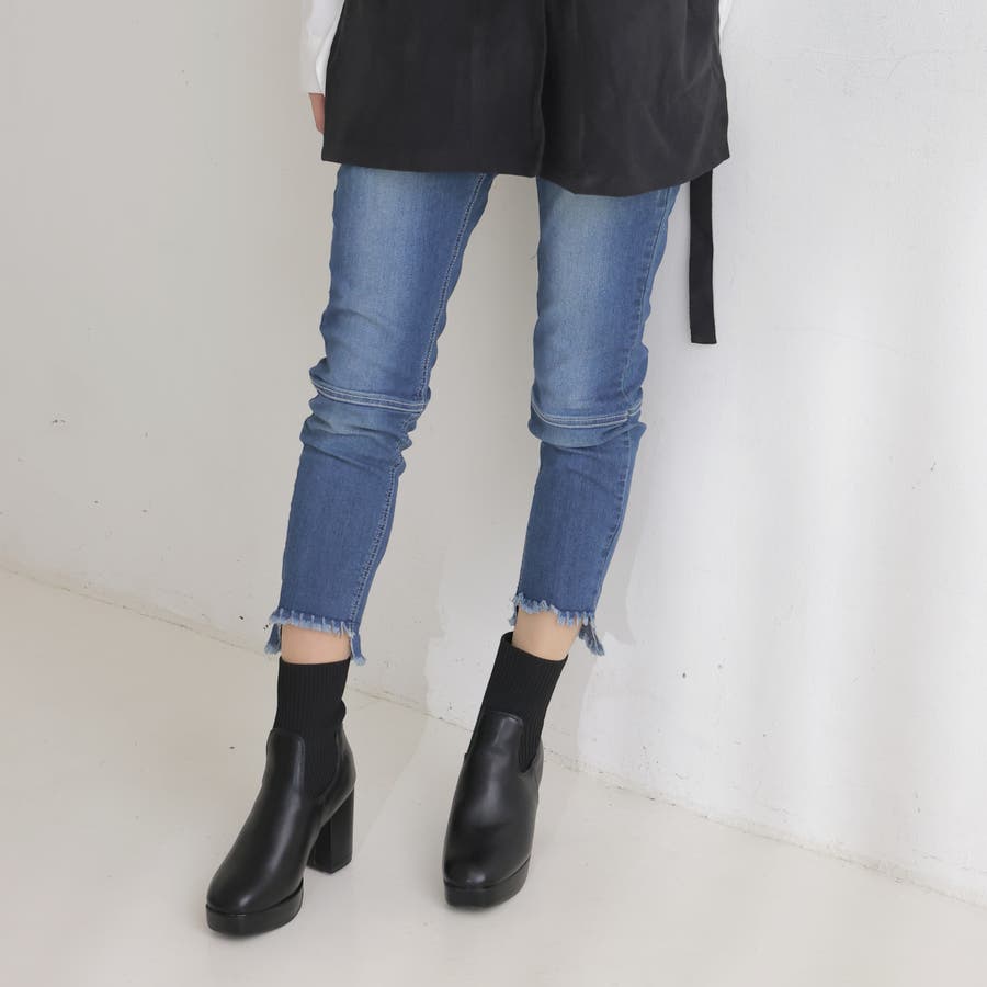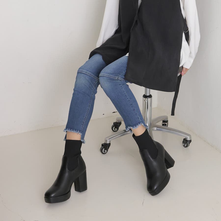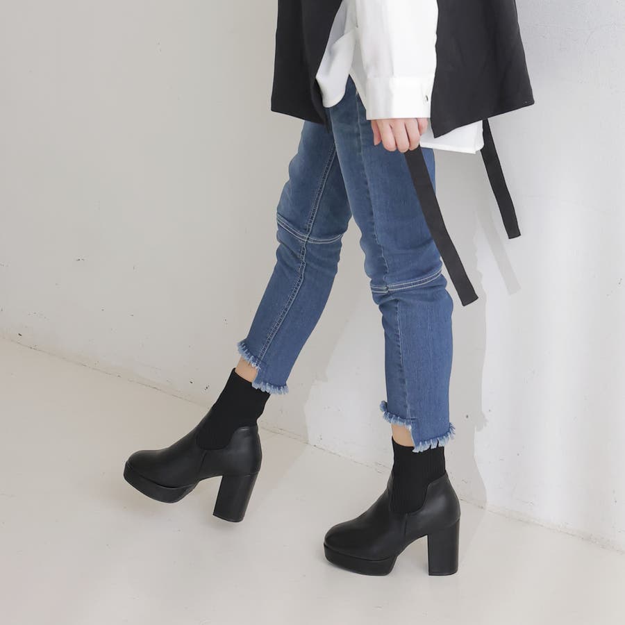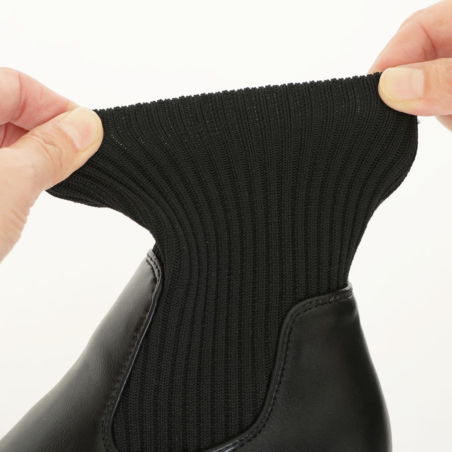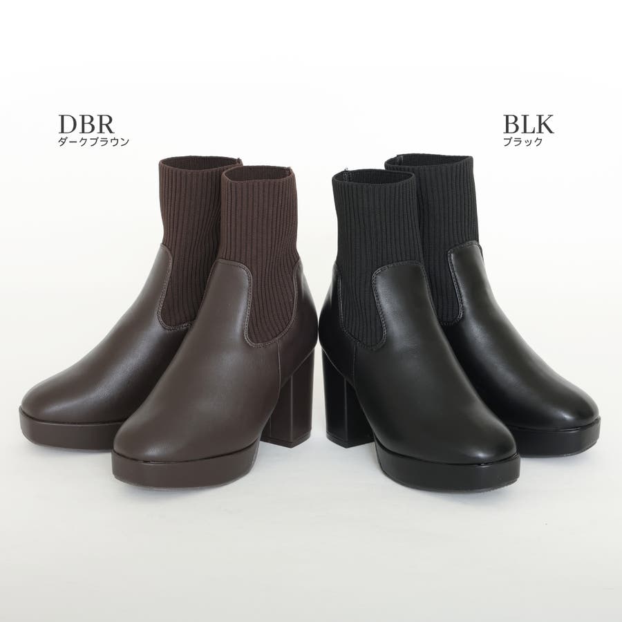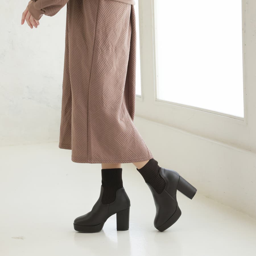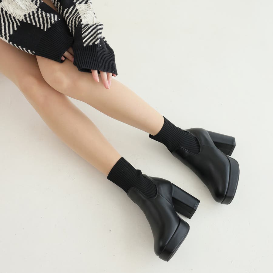 スムース素材にトレンドのリブニットをドッキングした足元も盛れる厚底ニットブーツ♪
