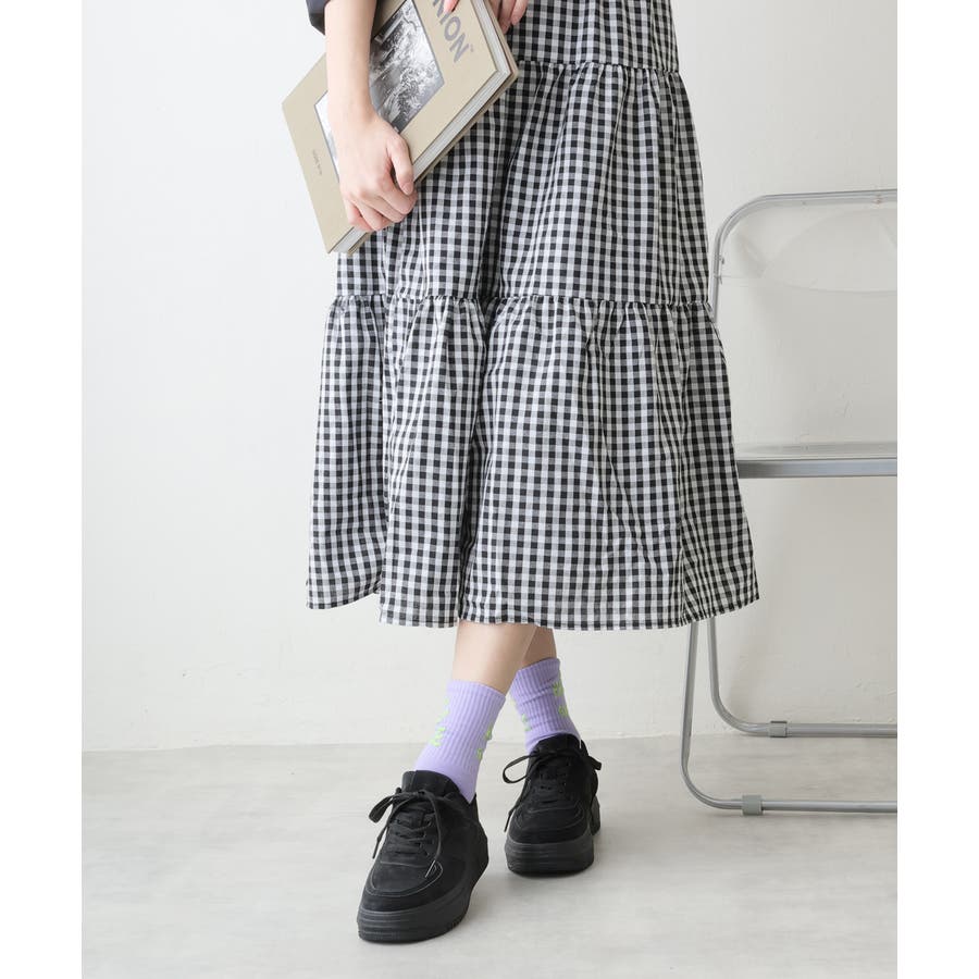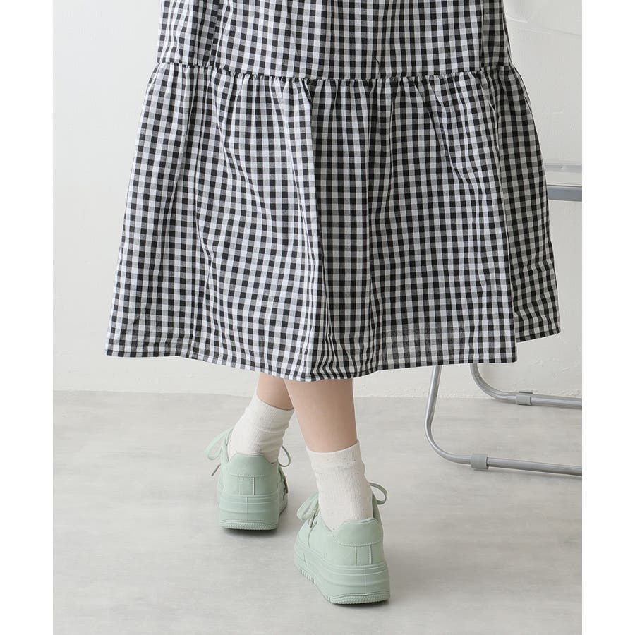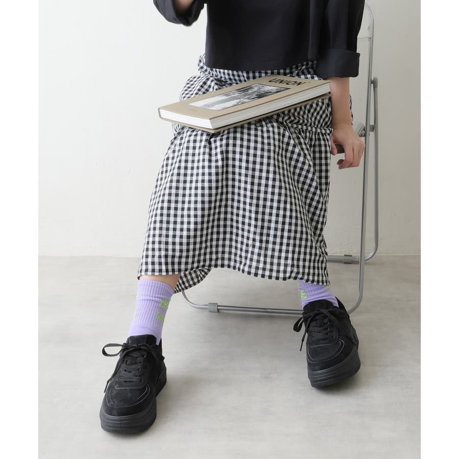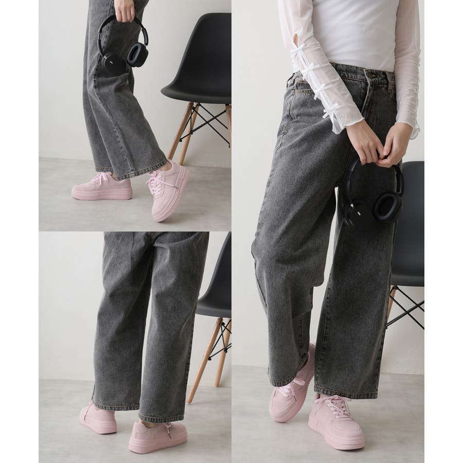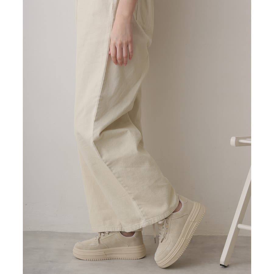傾斜は少なくフラットに近い厚底ソールなので歩きやすく、デイリー履きにどんどん使えます♪