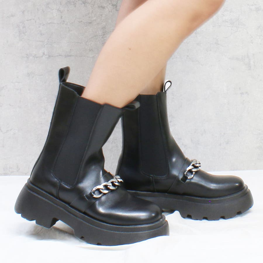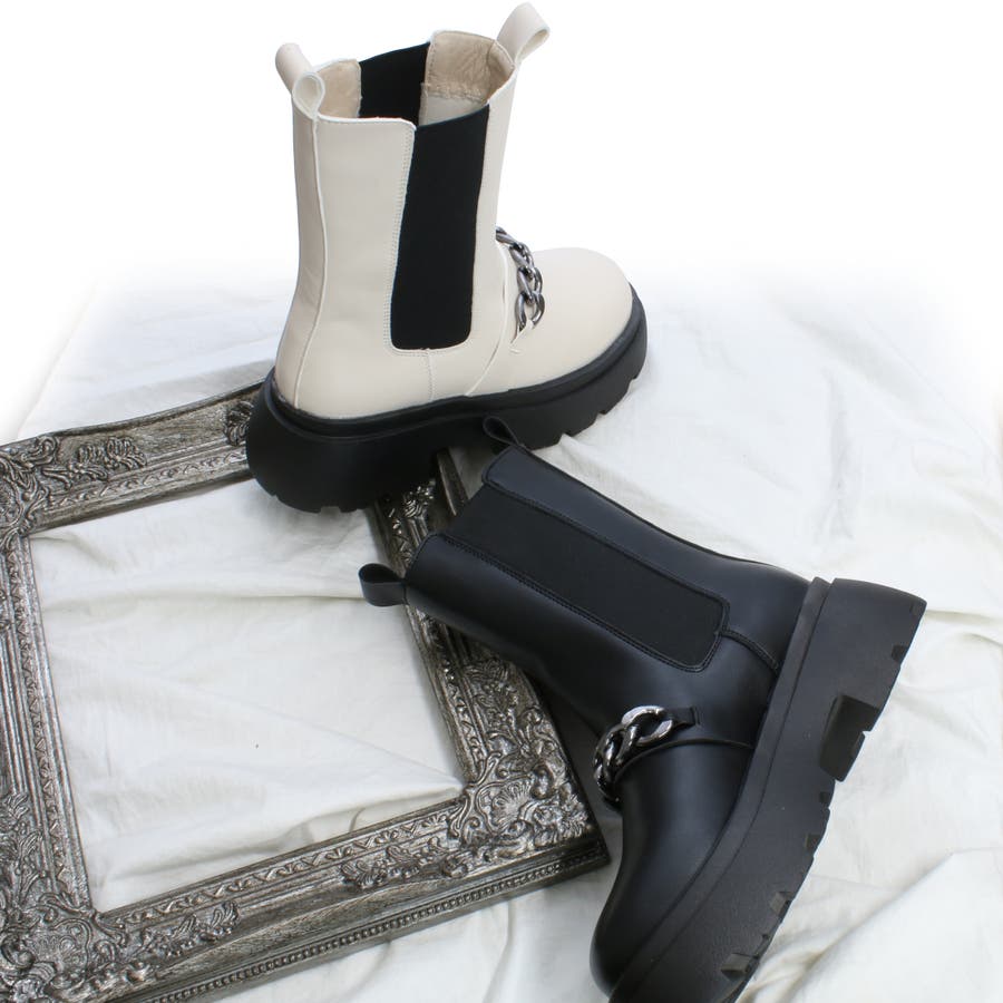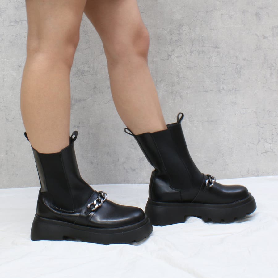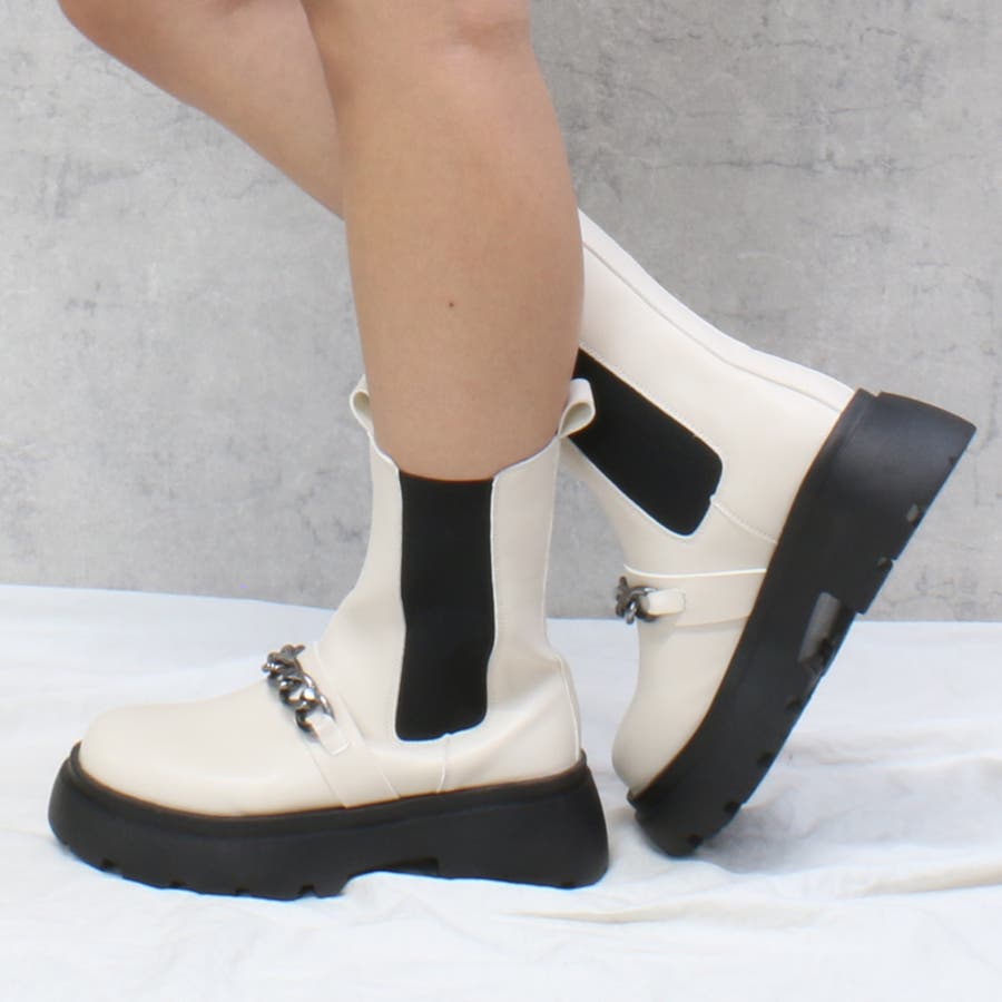 厚底ソール☆チェーンモチーフ サイドゴアブーツ