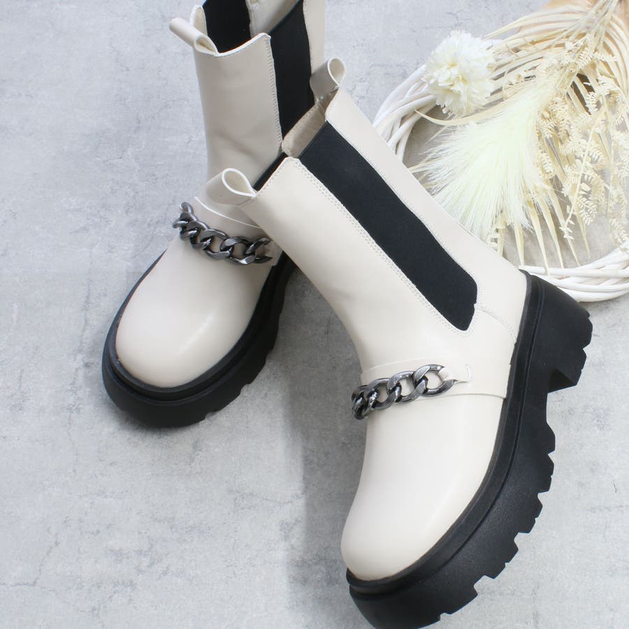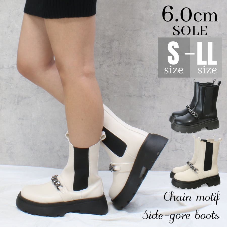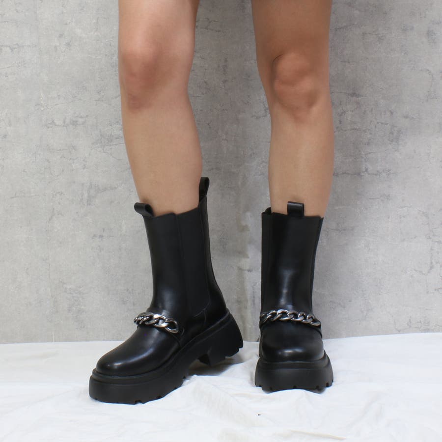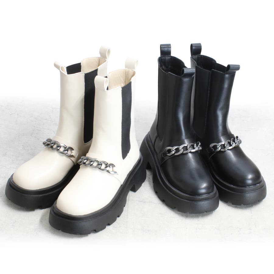 厚底ソール☆チェーンモチーフ サイドゴアブーツ