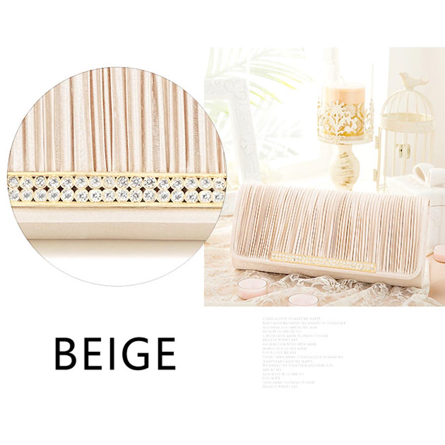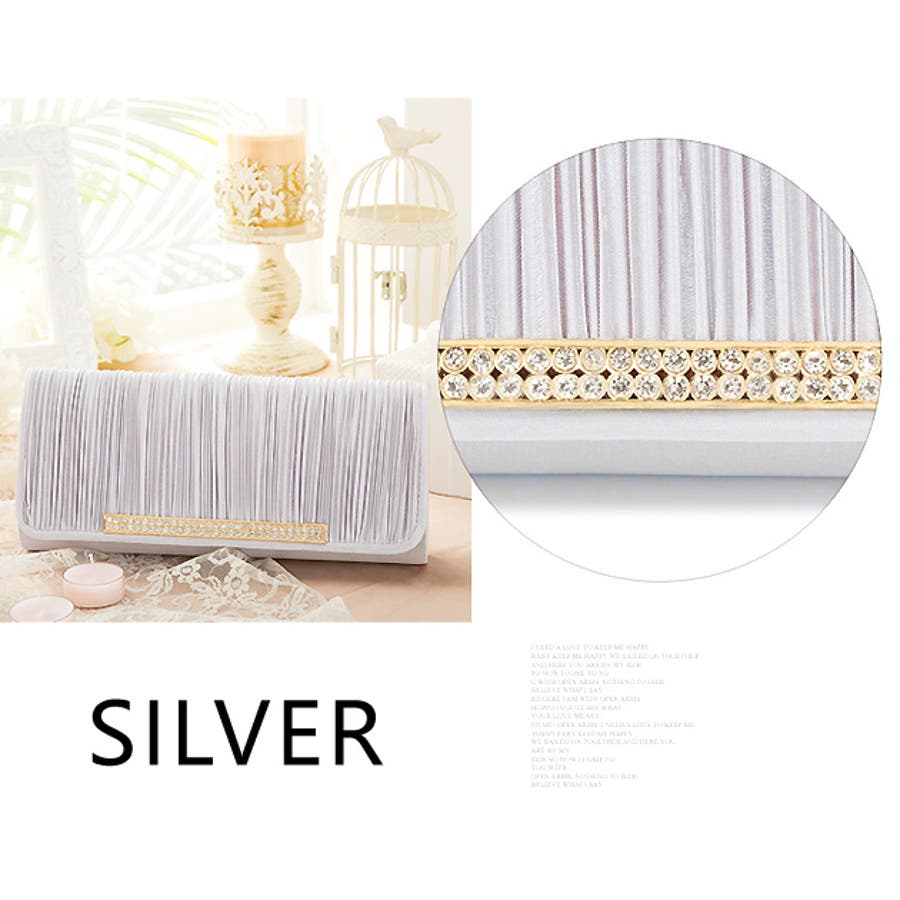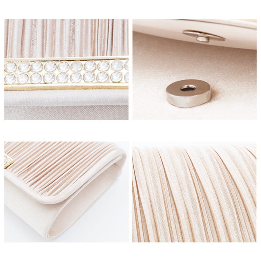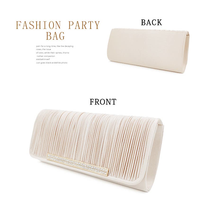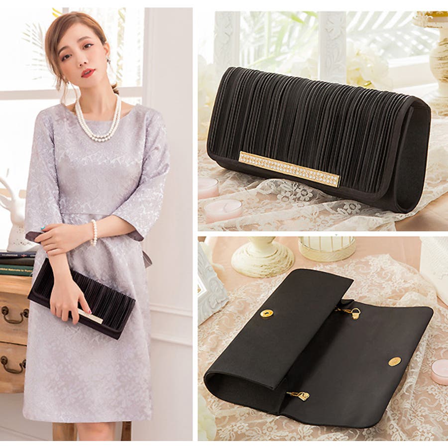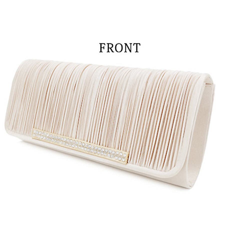 サテンプリーツ&ラインストーンの上品なパーティーバッグ