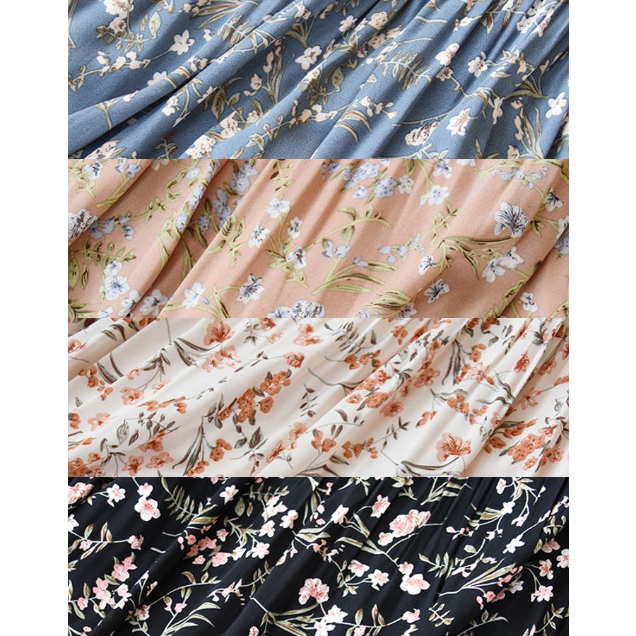 花柄ロングプリーツスカート フラワープリント シフォン
