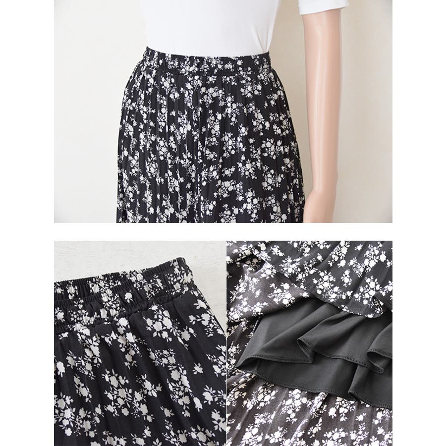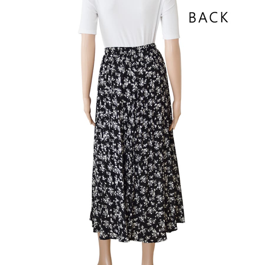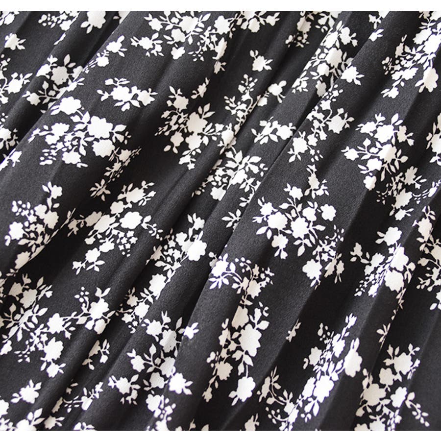 ◆細かいプリーツが揺れる小花柄のフレアロングスカート