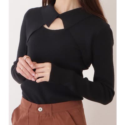 カットアウト襟付きリブニットボレロ風プルオーバー 女性 レディース