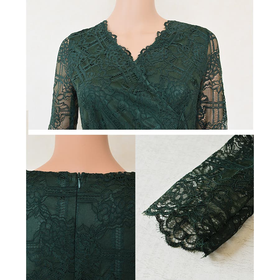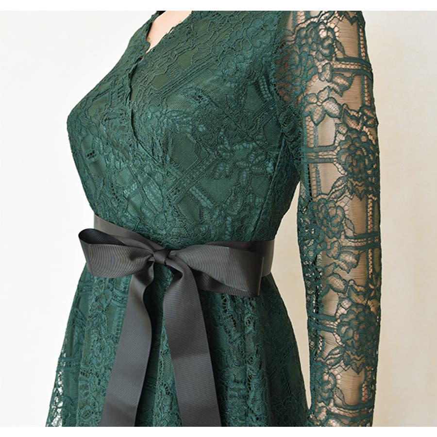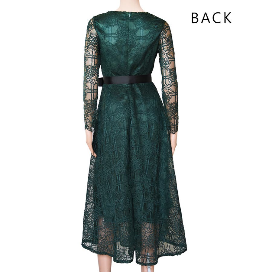 総レースワンピースミモレ丈ドレス レースワンピ ドレスワンピース