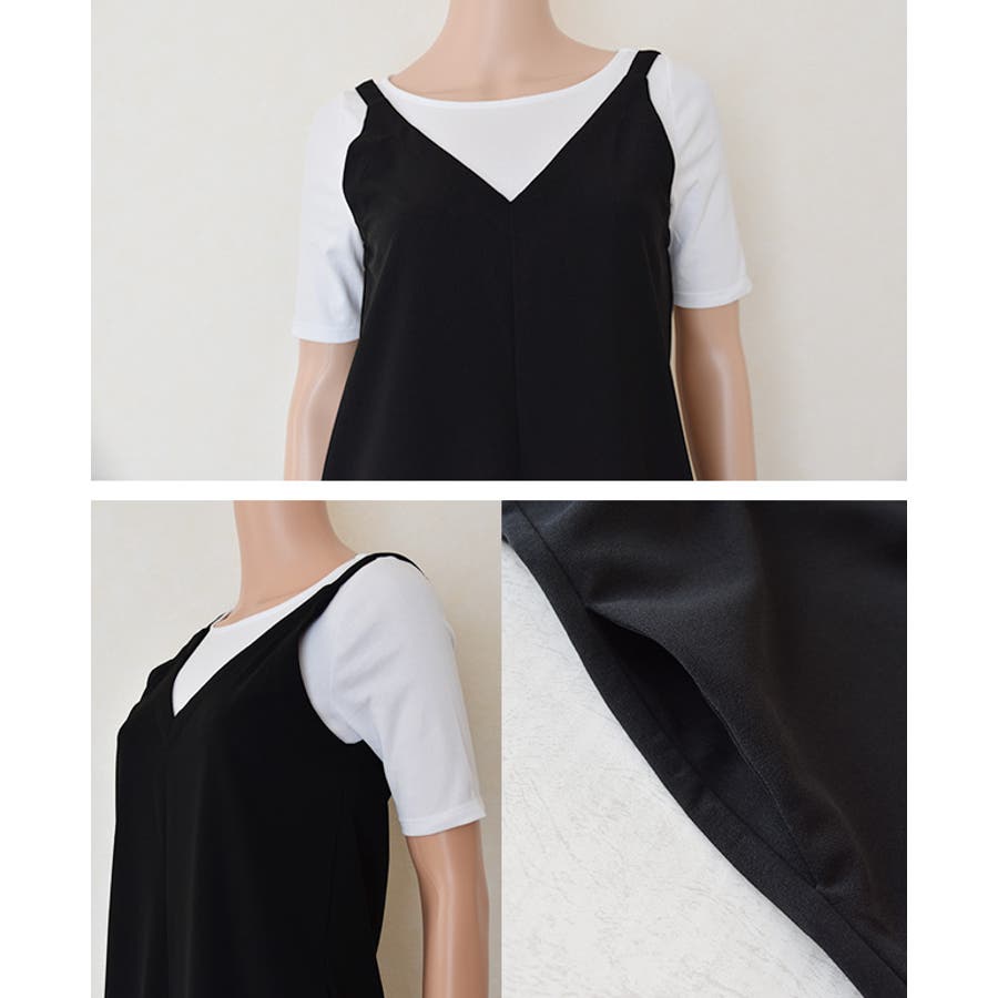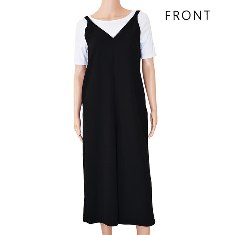 前後ともVネックになっているので幅広オールインワンでもスッキリ見えます。