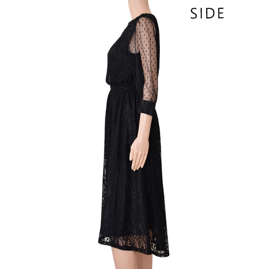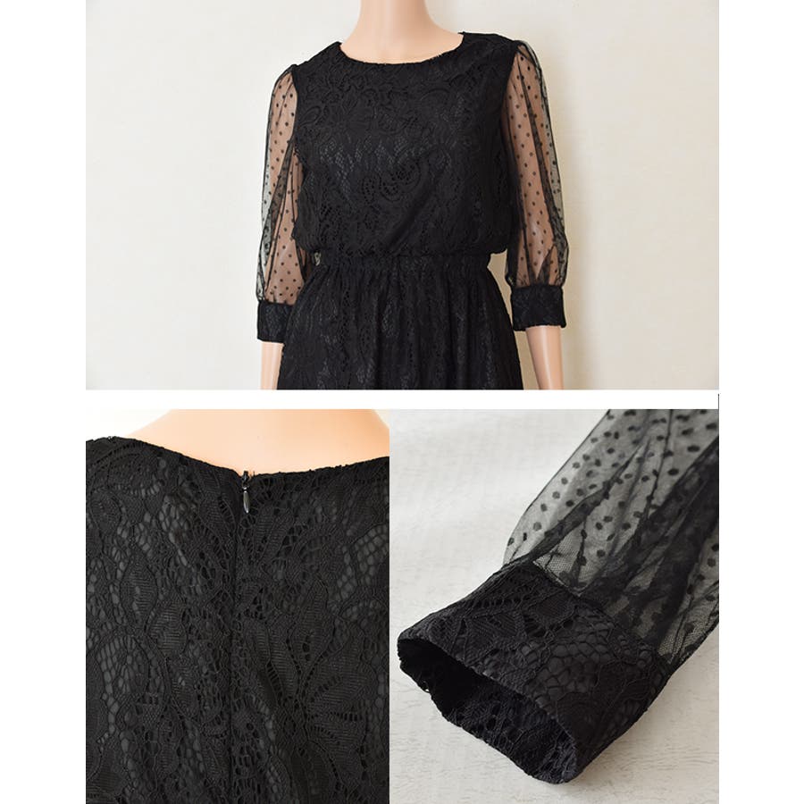 ドットチュールで袖を切り替えた、透け感が大人っぽく上品な印象のワンピース。