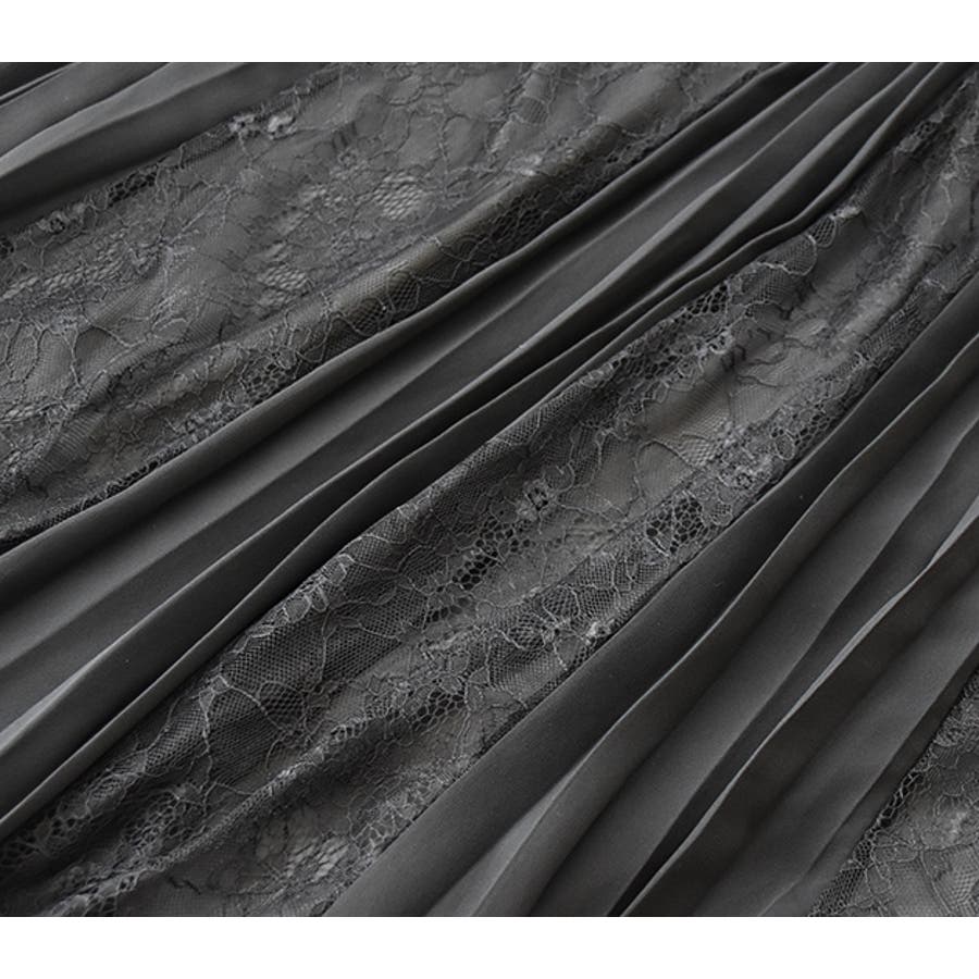 透け感のあるプリーツ&花柄レースを使った個性的なデザインのシフォンスカートは、人気のロング丈。
