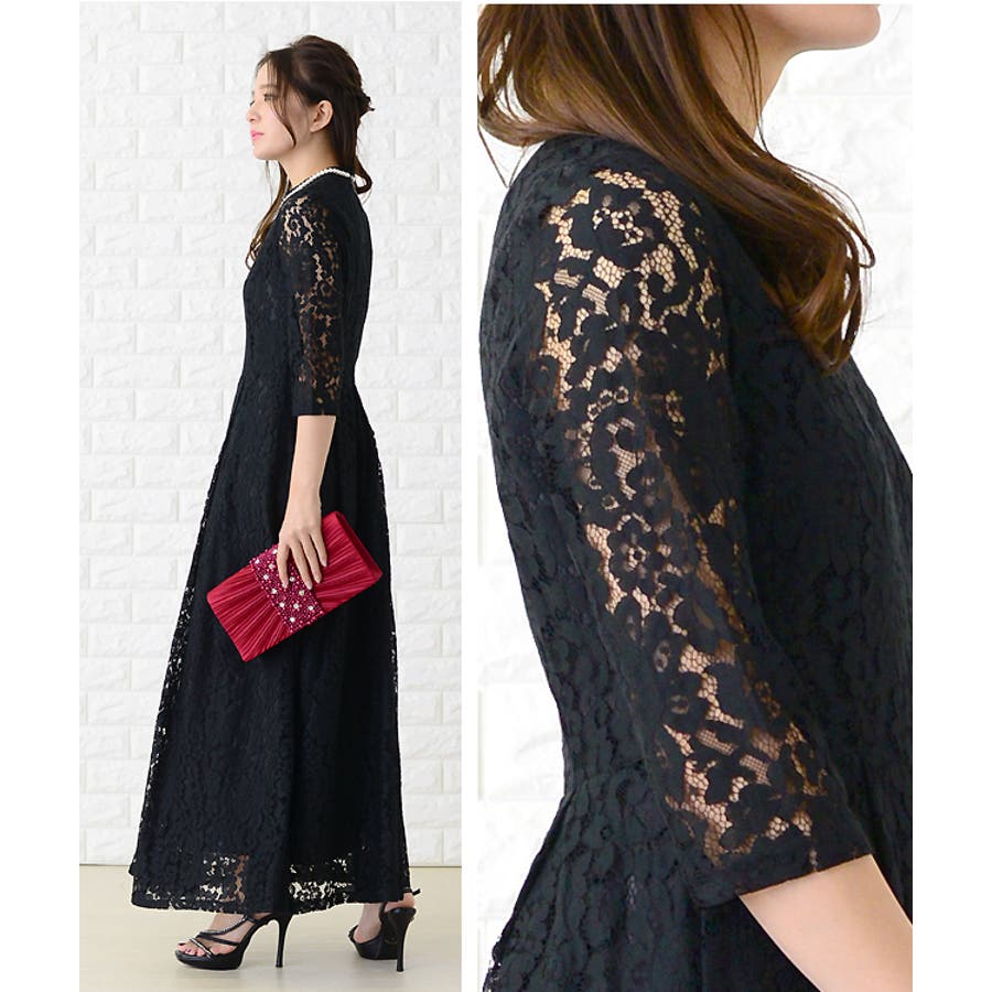 花柄レースが大人っぽいロングドレス