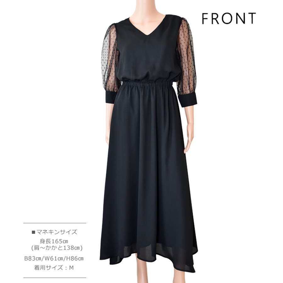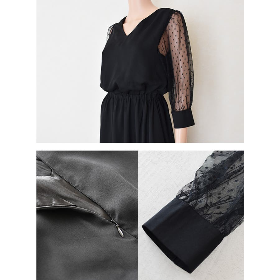 ドットチュールで袖を切り替えた、透け感が大人っぽく上品な印象のワンピース。