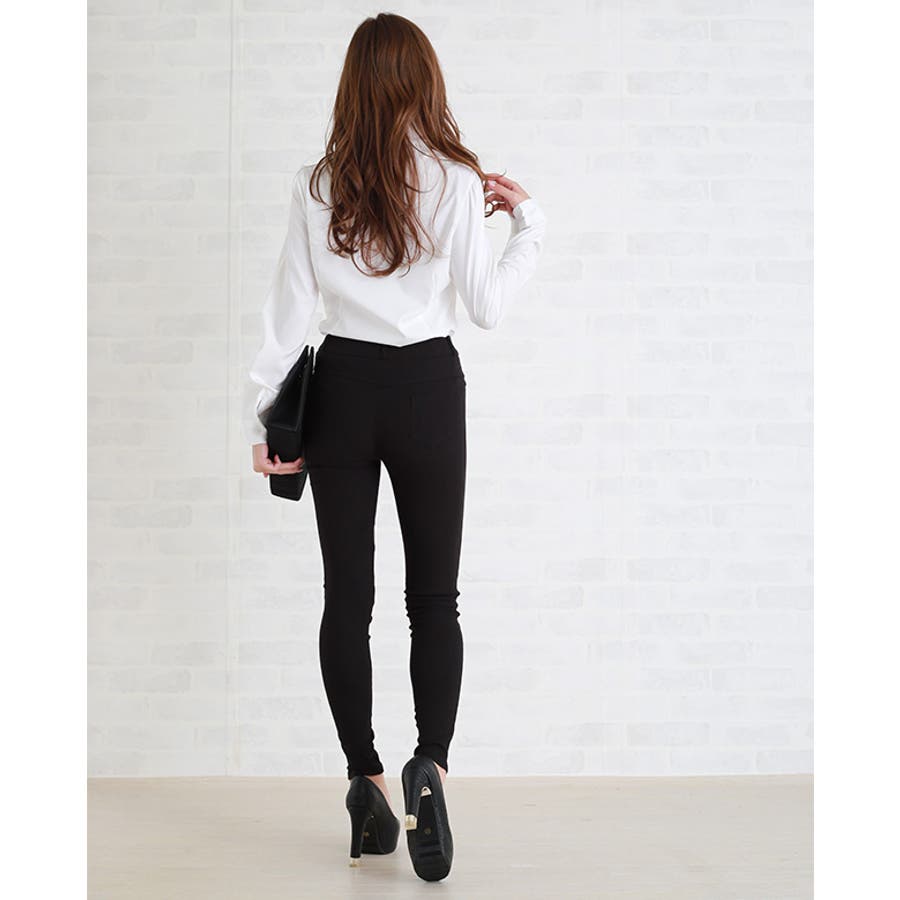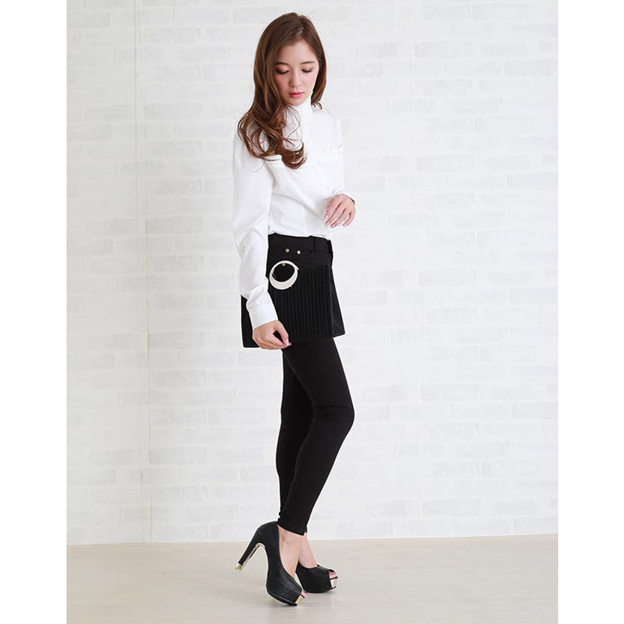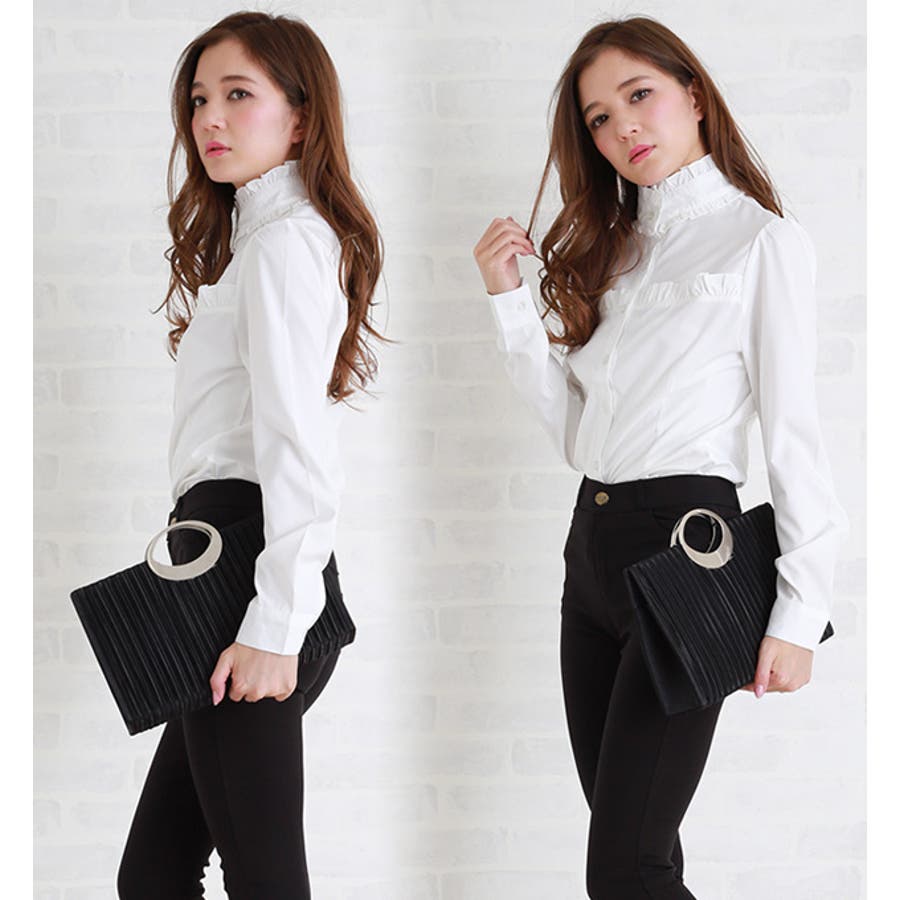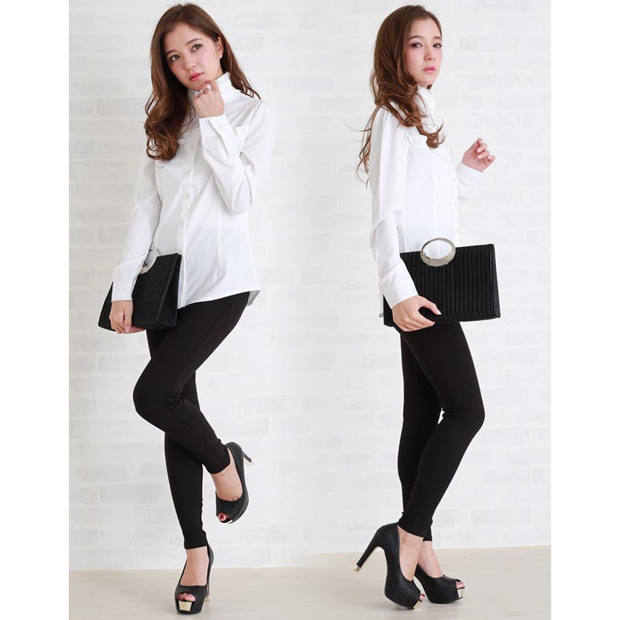 お顔周りを華やかに魅せてくれる立ち襟タイプ、立体的なシルエットで細身効果!