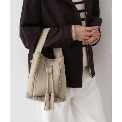 柔らかなスウェード素材と、シボ感のある合成皮革の2種類で展開する巾着バッグ。