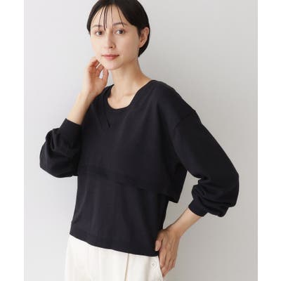 Vネックのショート丈長袖プルオーバーと前後どちらでも着られる2way仕様のノースリーブインナーの2点セット。