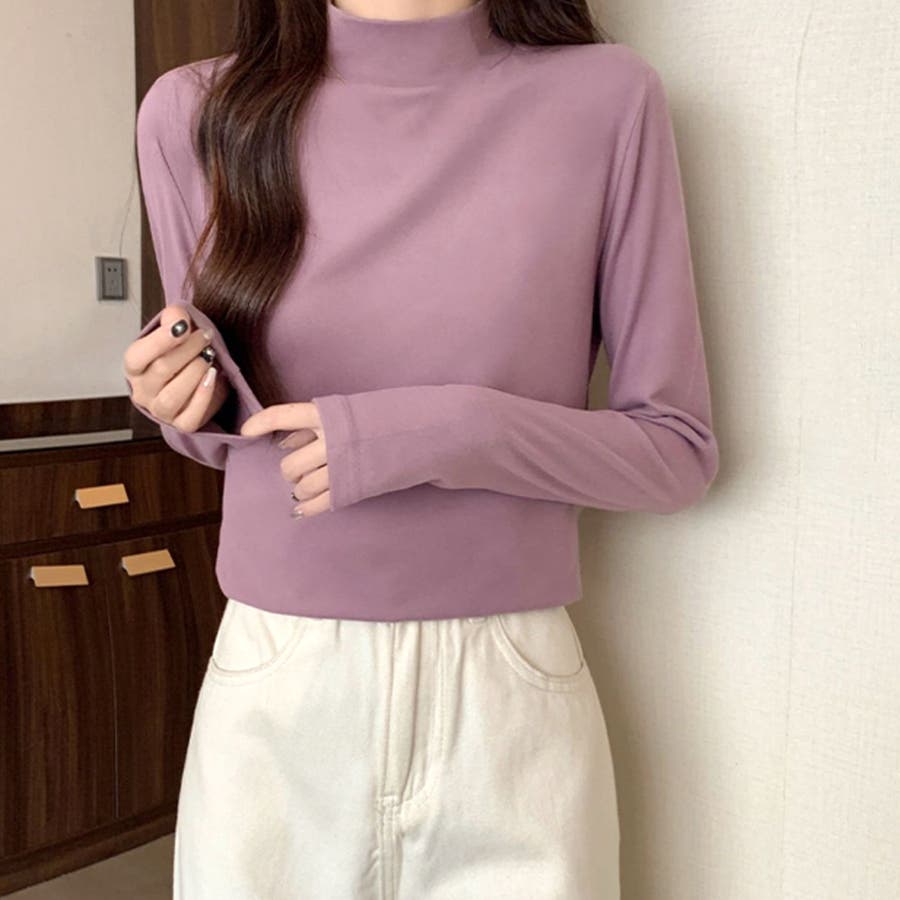 ・無地でベーシックに使えるので、トップスとしてもインナーとしても着まわせる優秀アイテム。