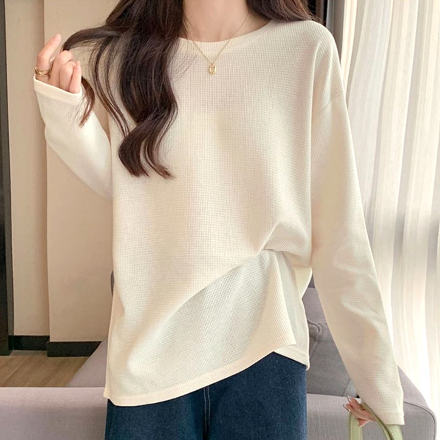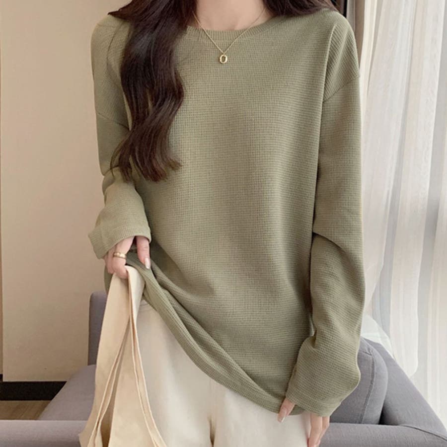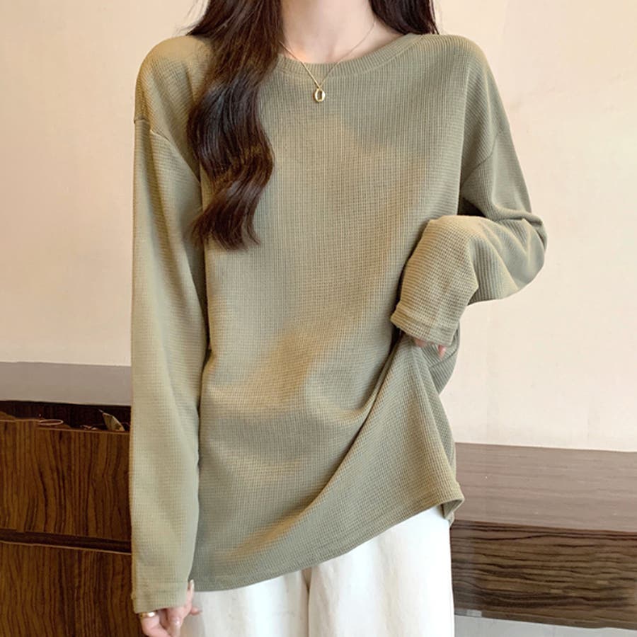 ・ラウンドネックでリラックスした着心地で、柔らかな印象に仕上がるトップスアイテムです。