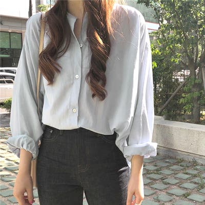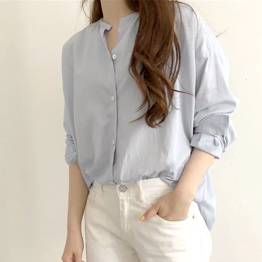 ノーカラーシャツ ブラウス レディース