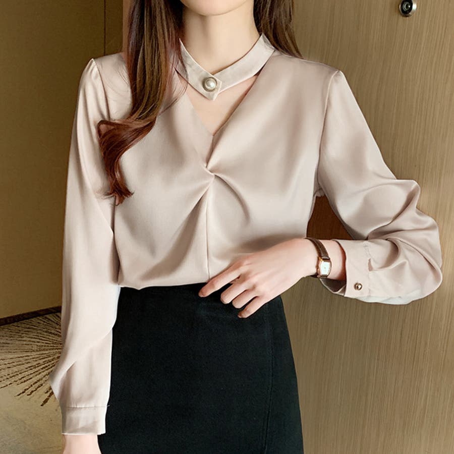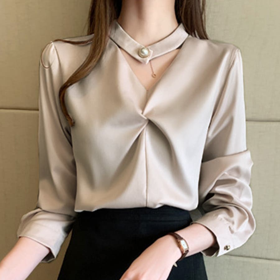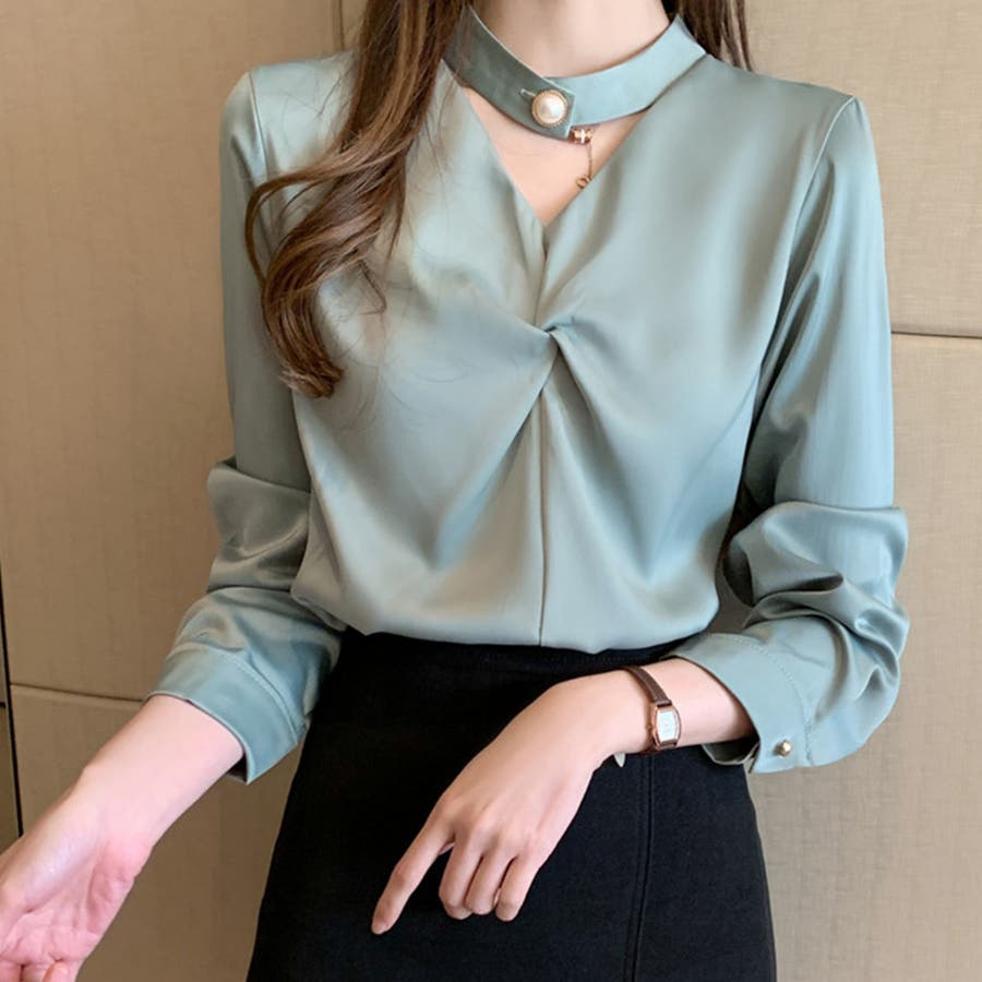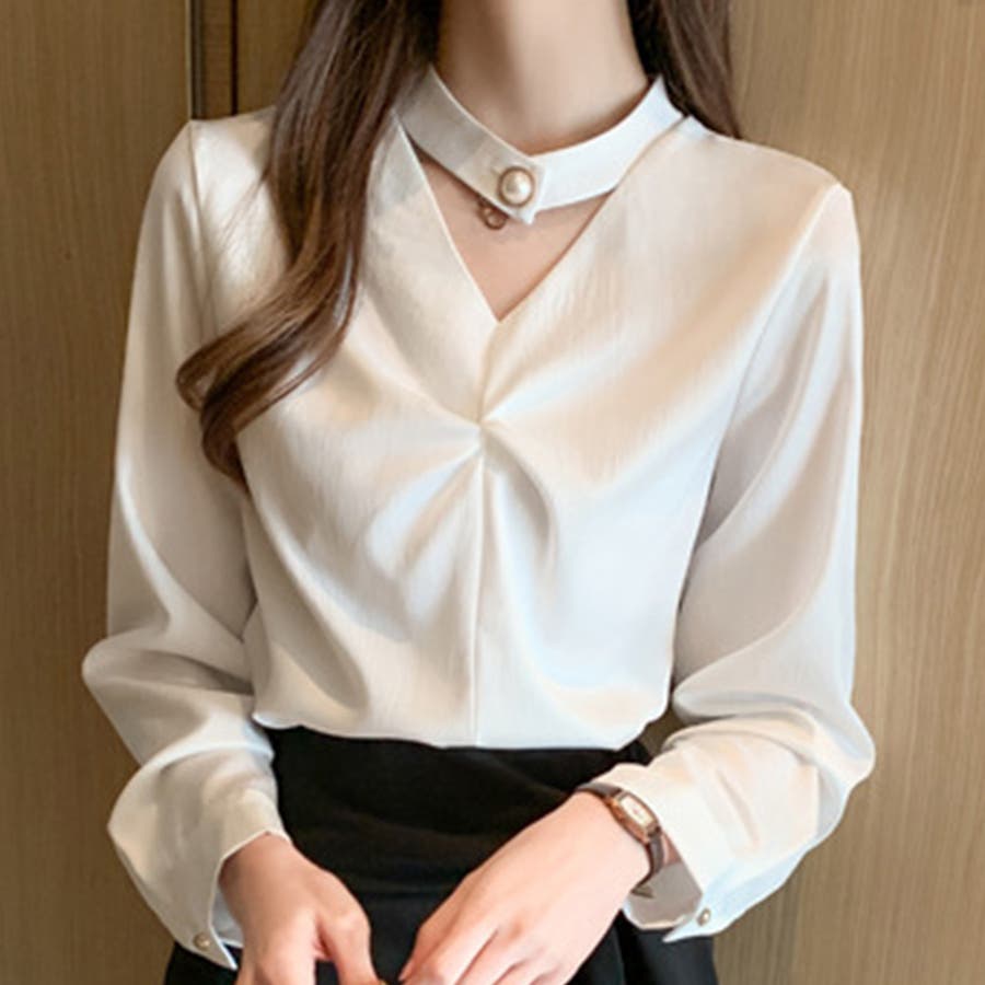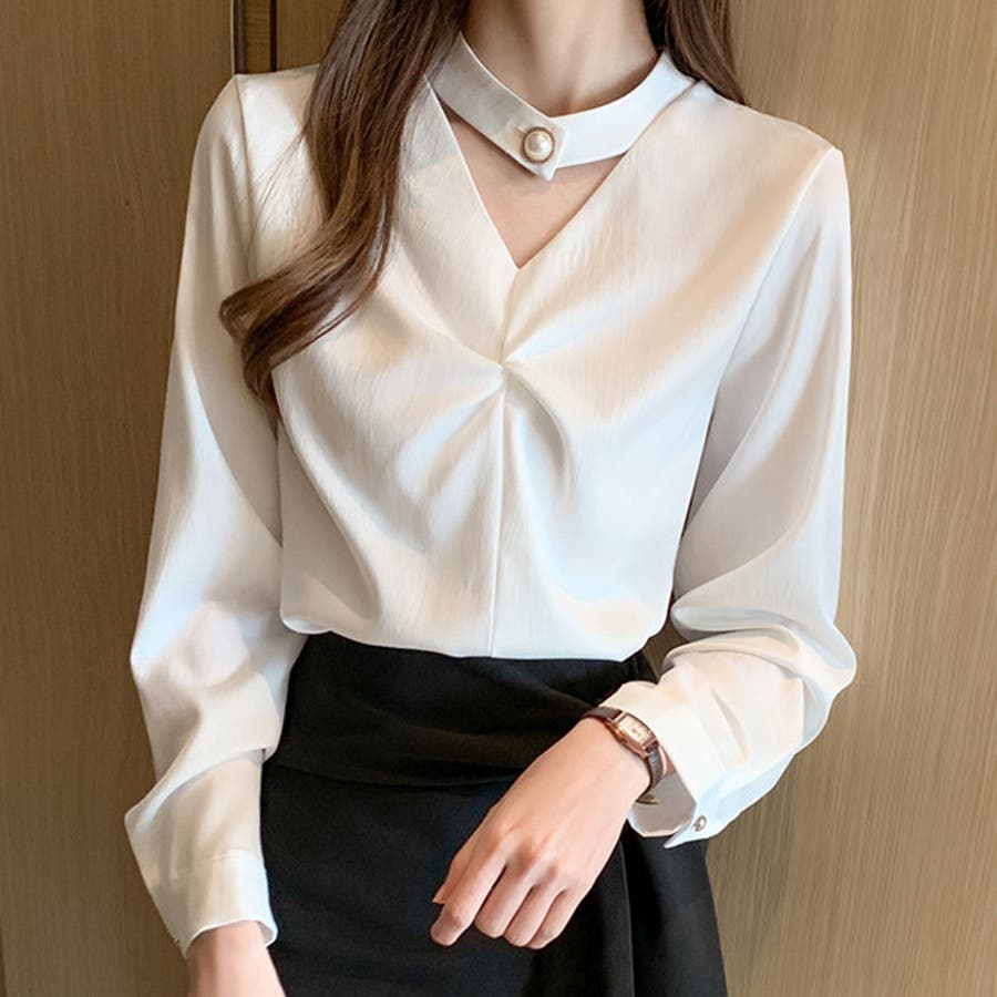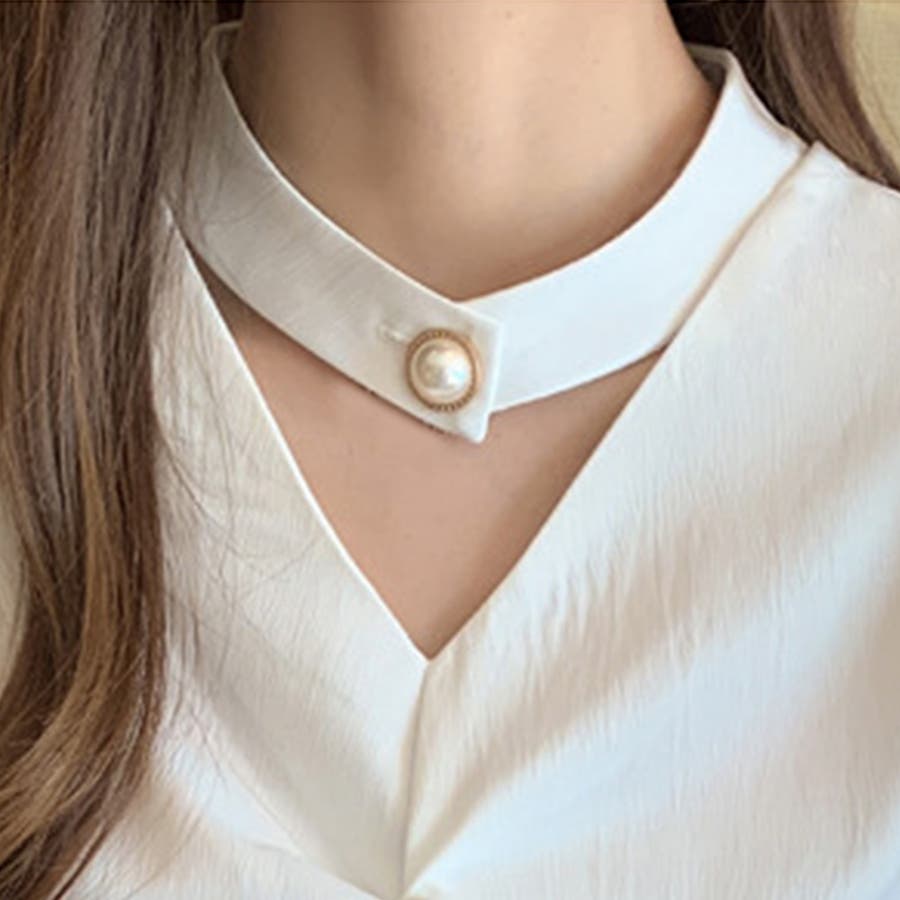 ・チョーカーデザインがアクセントになっているオシャレ見えするブラウス。