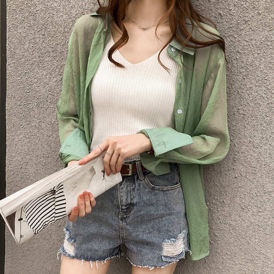 ・大人っぽさと程よく上品な透け感可愛いシアーシャツ。