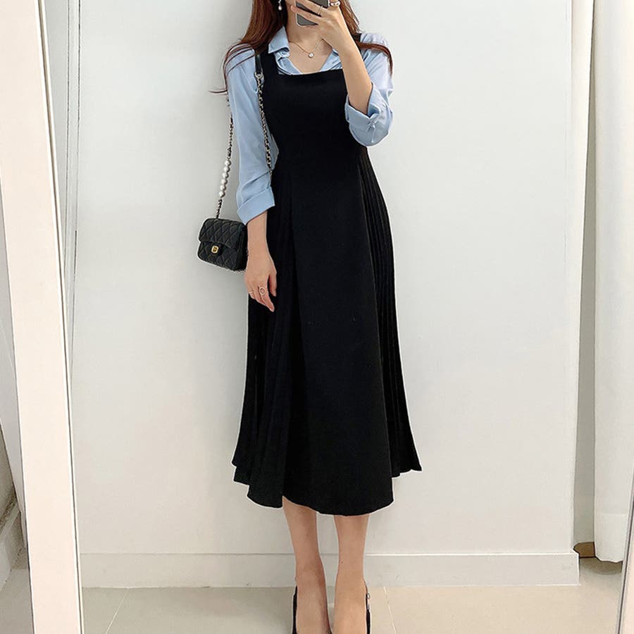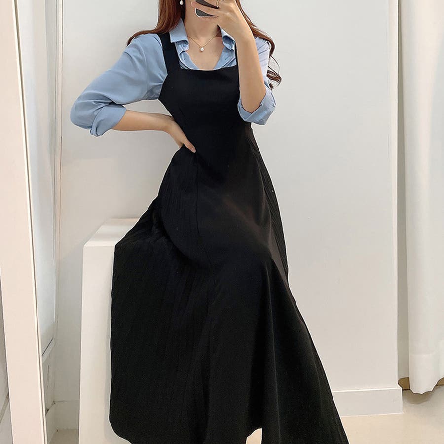 サロペットプリーツロングワンピース レディース 春服