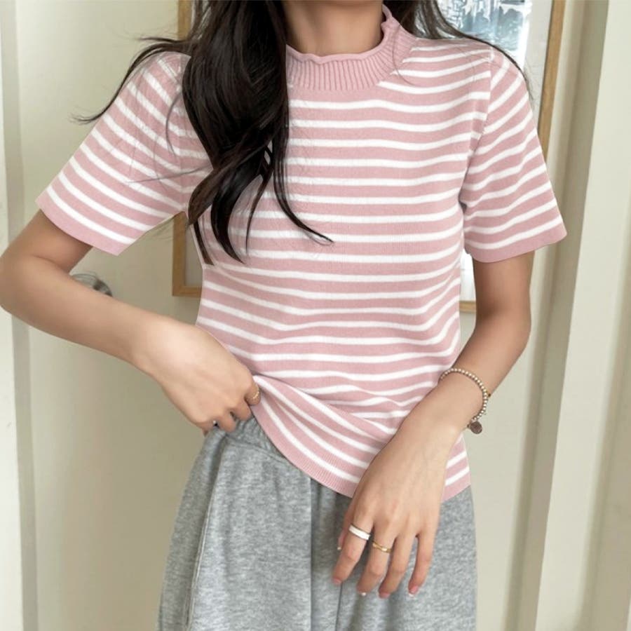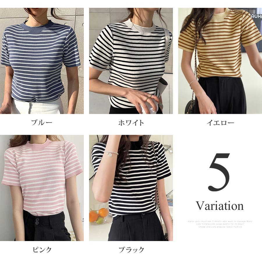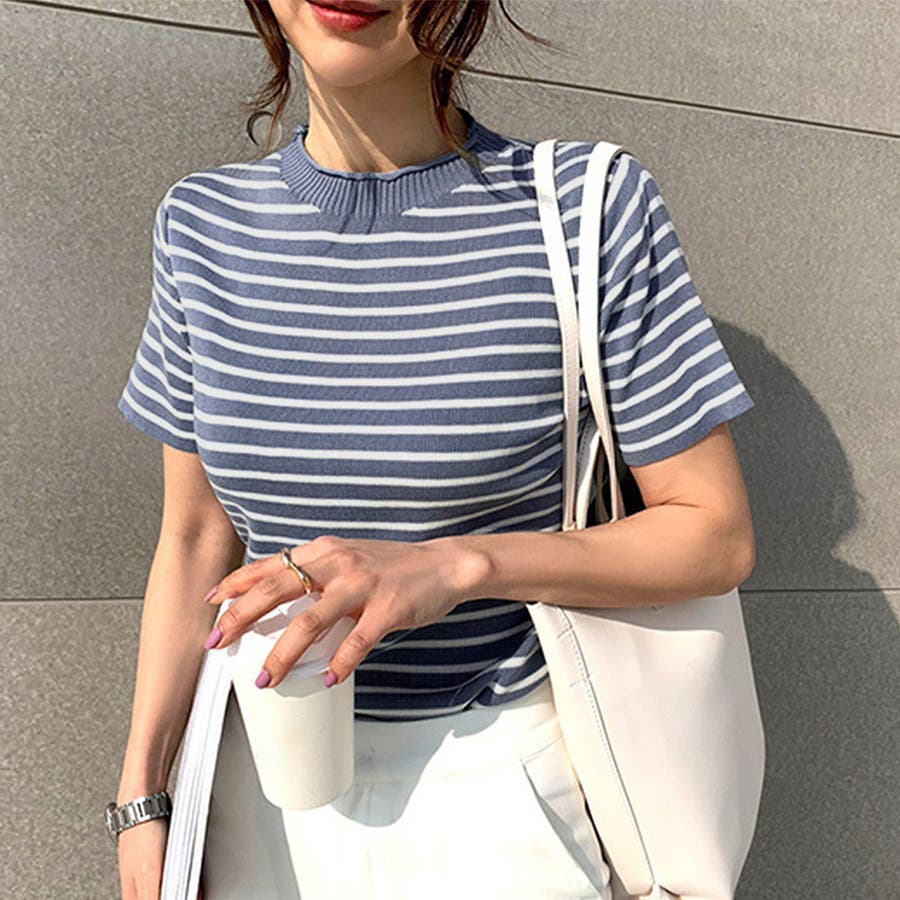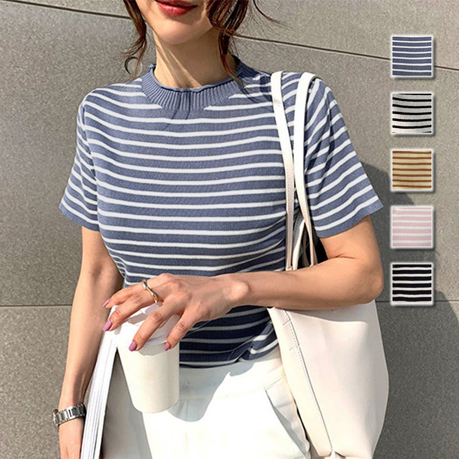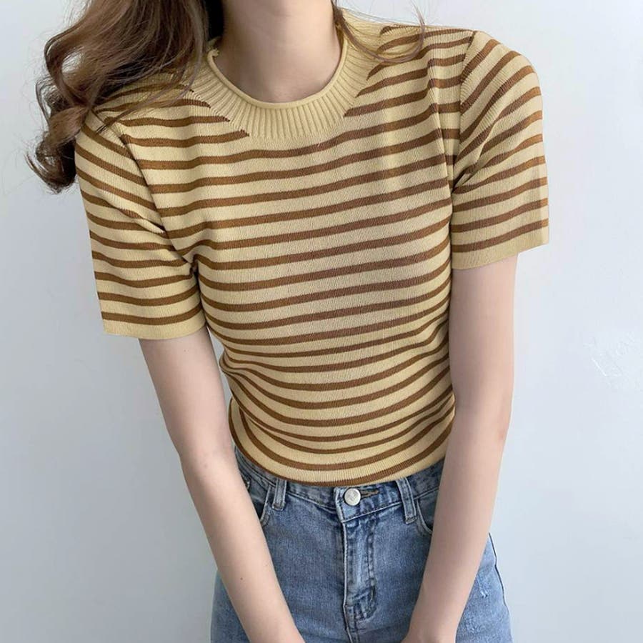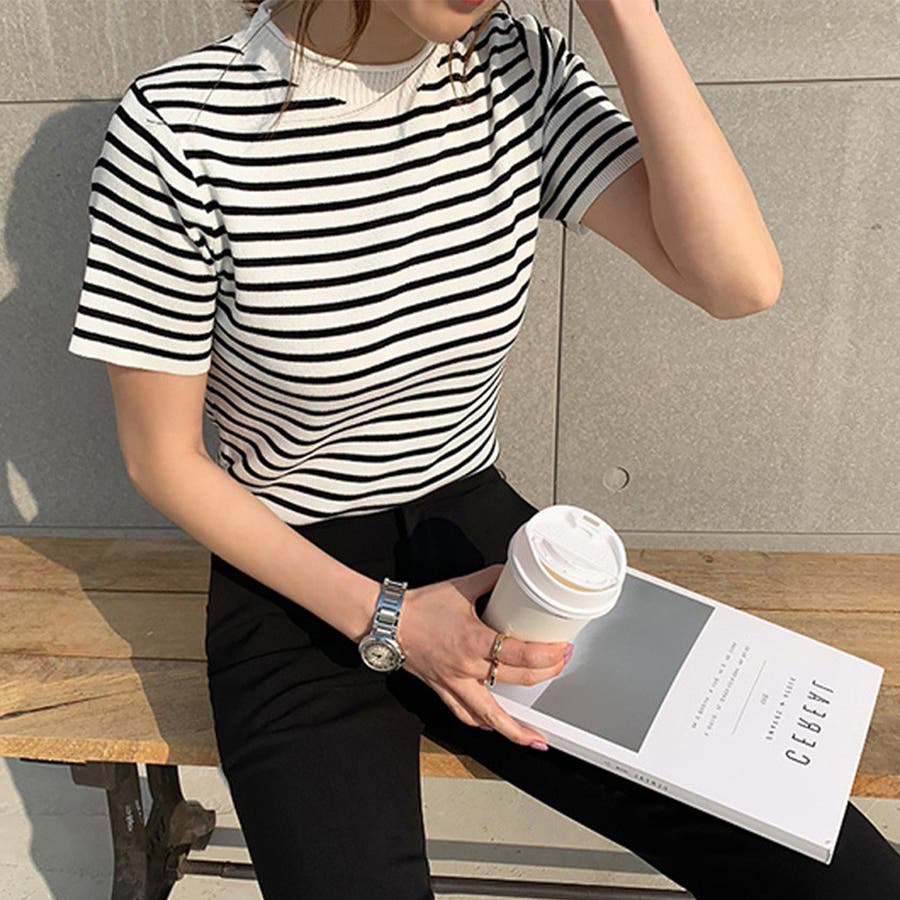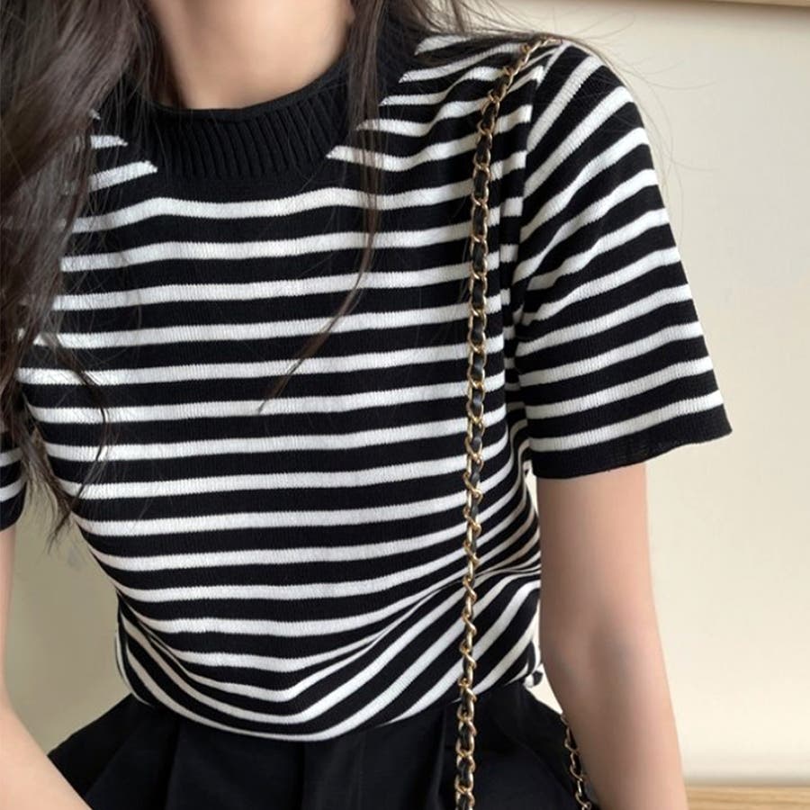 ボーダー半袖ニットソー レディース トップス春服