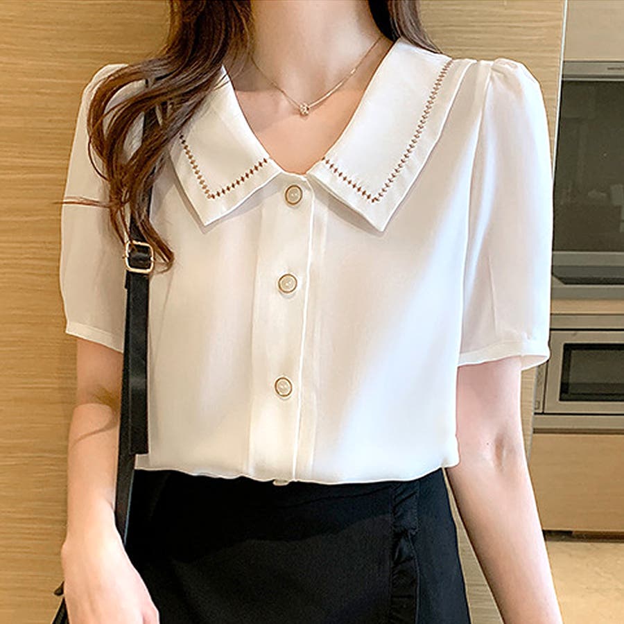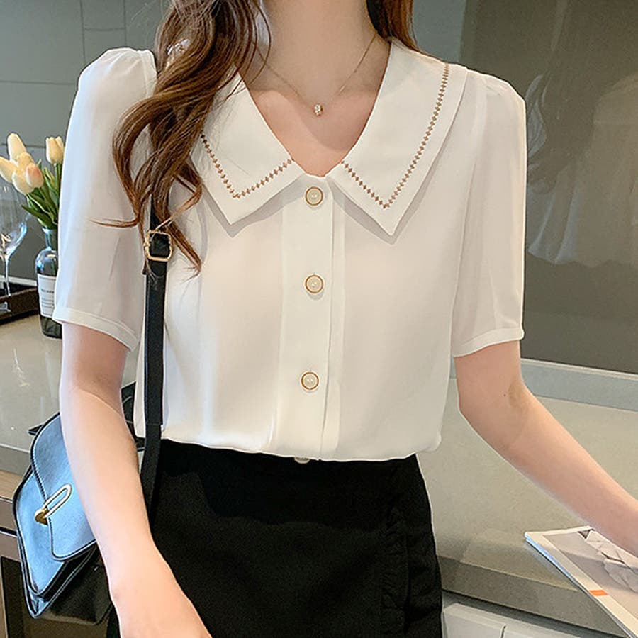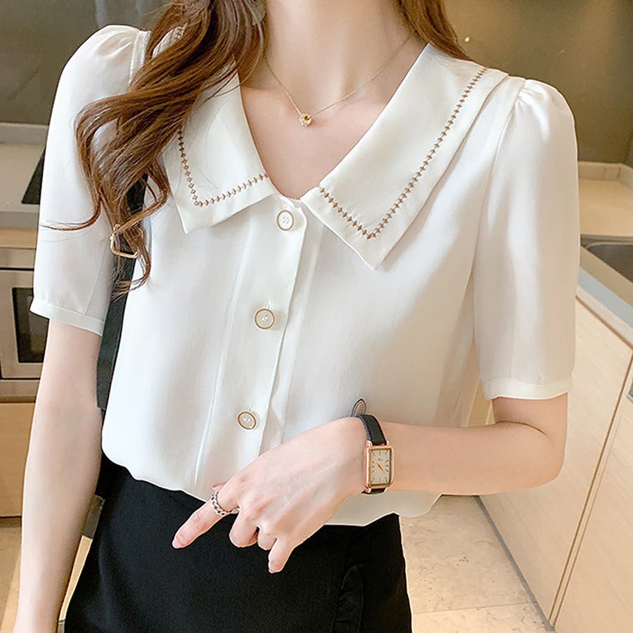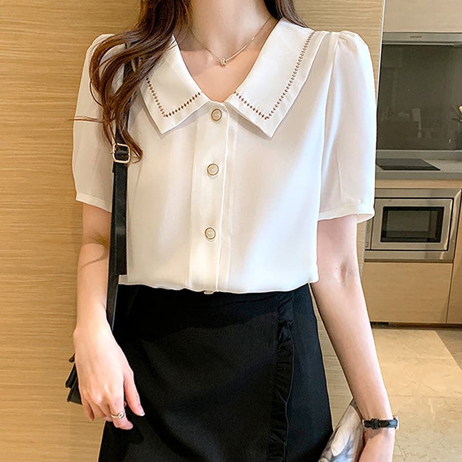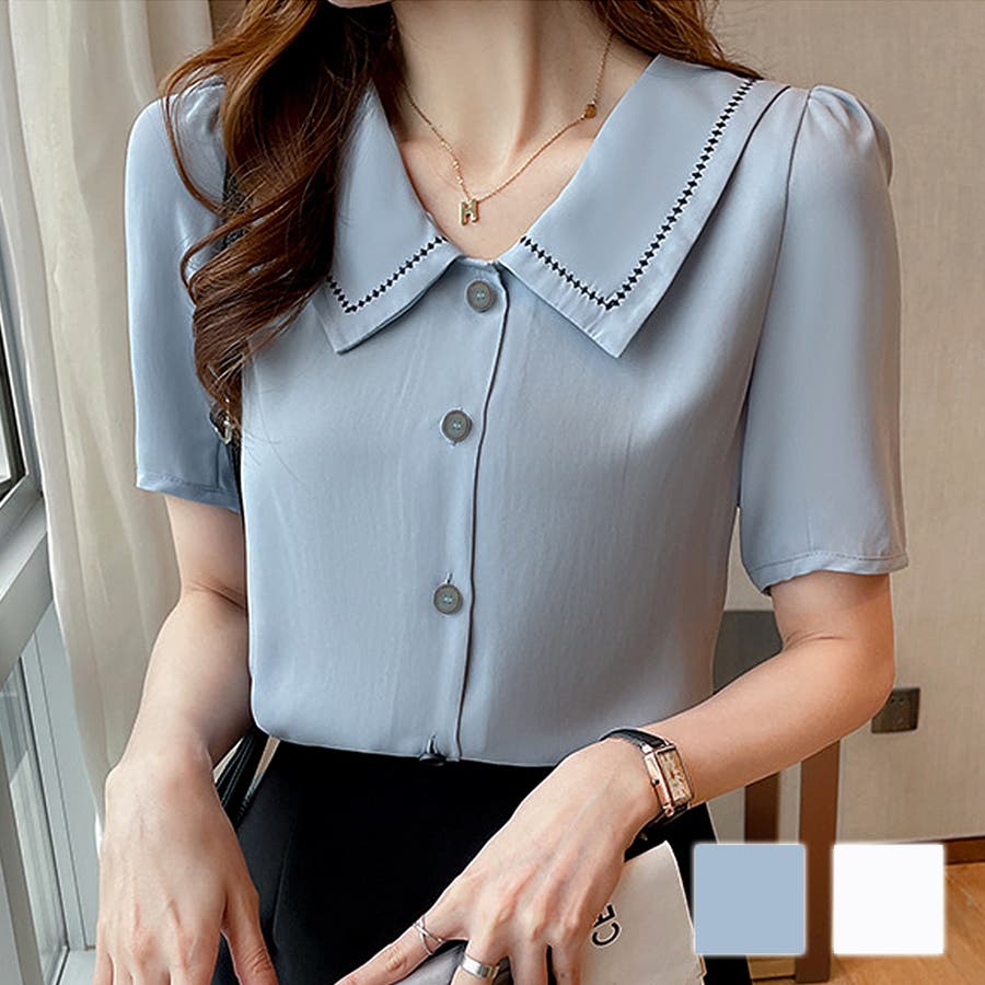 ・インパクトのある襟元のデザインが目を引くショートスリーブシャツ。