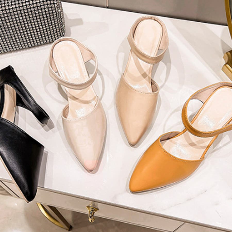 ・脚の甲のストラップデザインで安定感もよく、足元で抜け感を楽しめる大人っぽいアイテム。