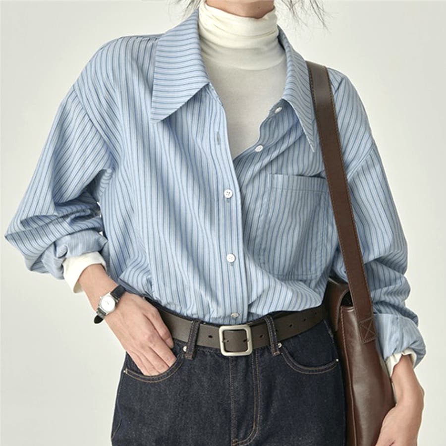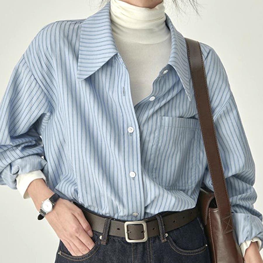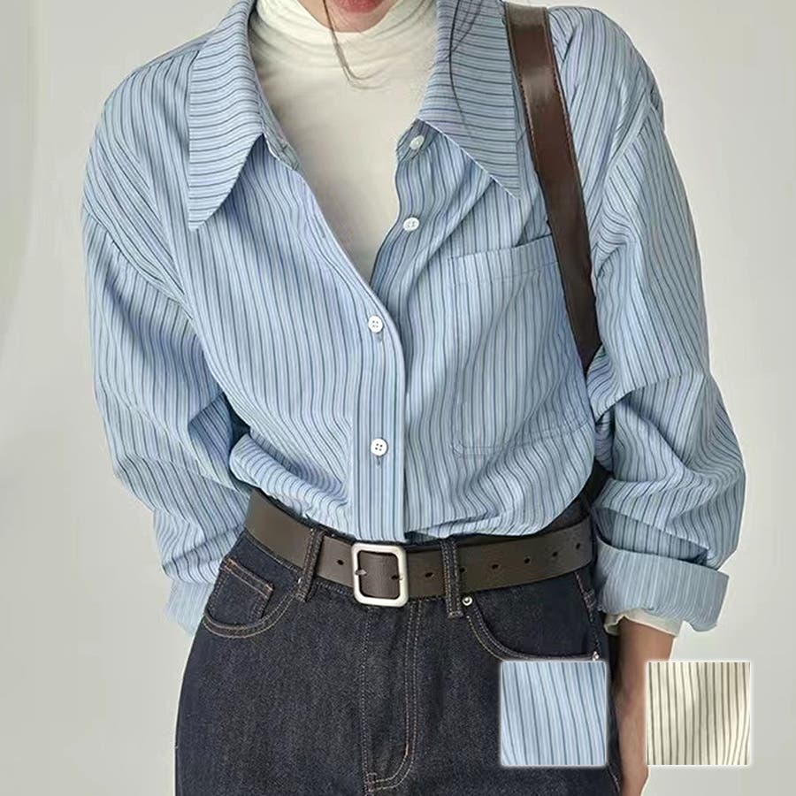 ・定番のストライプシャツは、1枚でおしゃれが完成する存在感のあるトップス♪