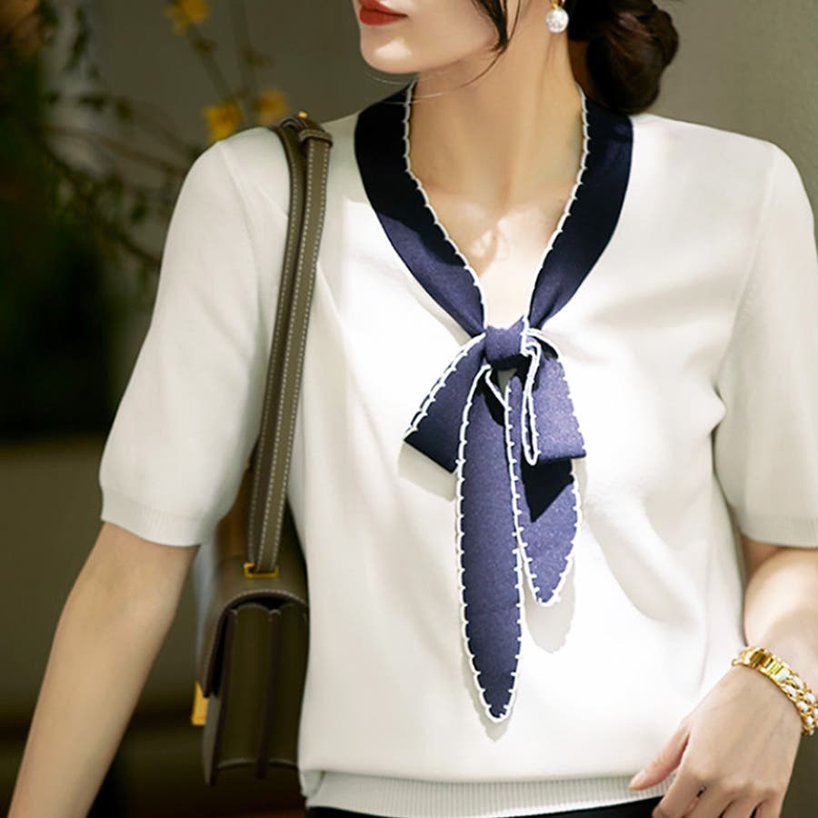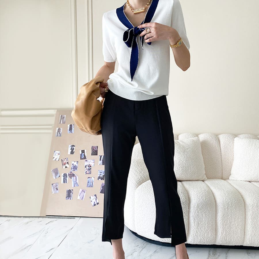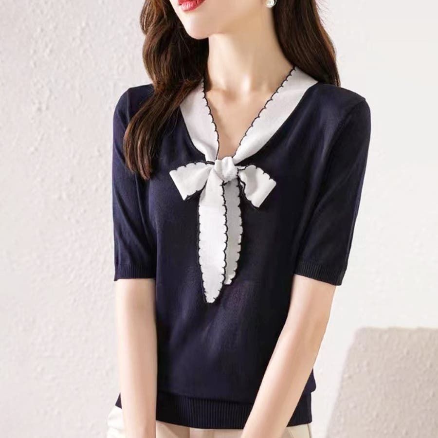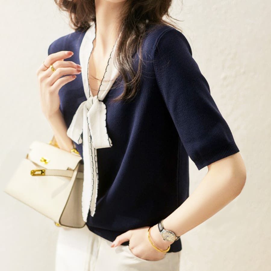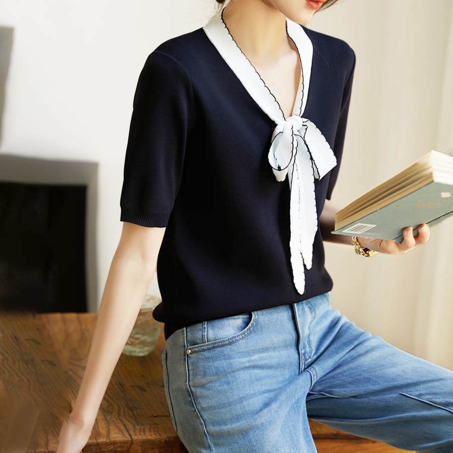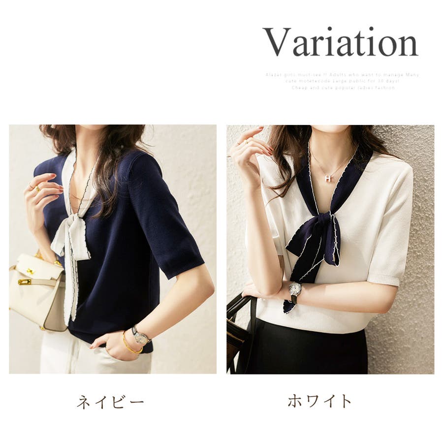 ・襟元のVラインが涼しく着心地が良いサマーニット♪
