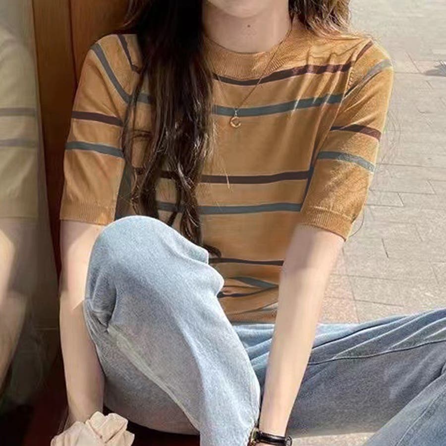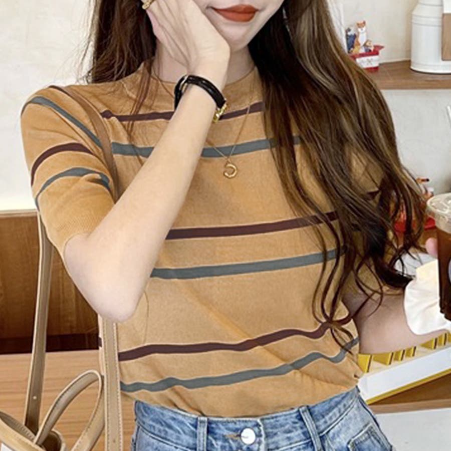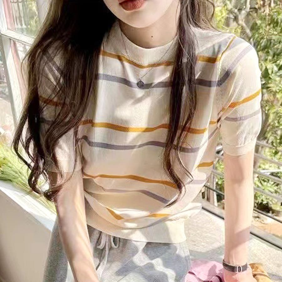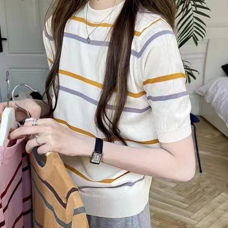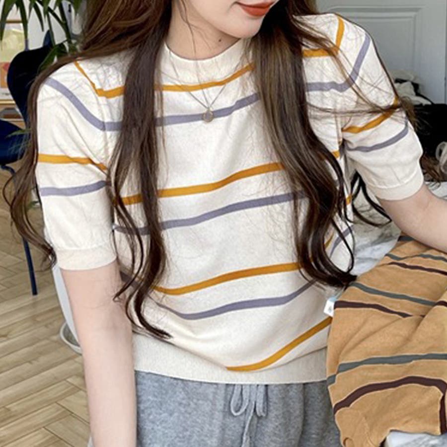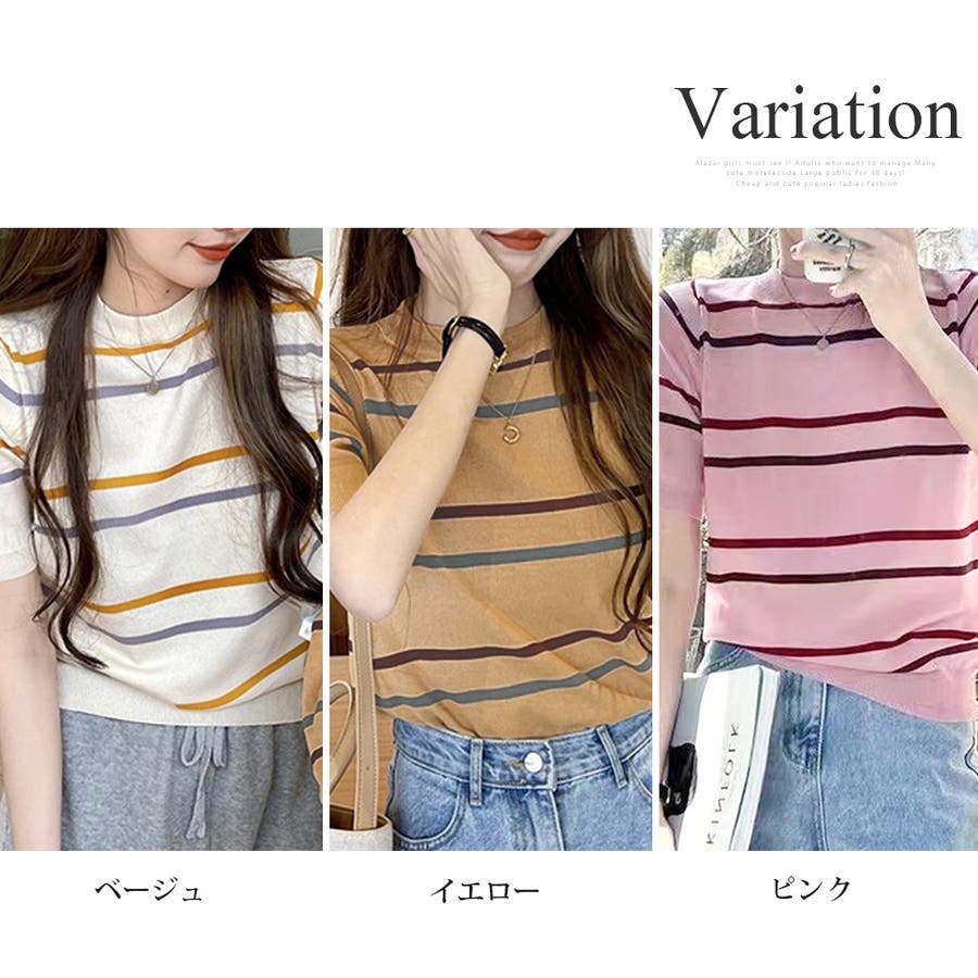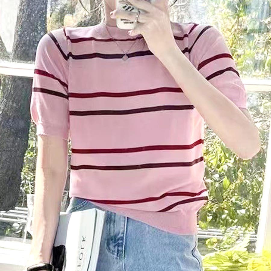 カラーボーダー半袖ニット 韓国ファッション 10代