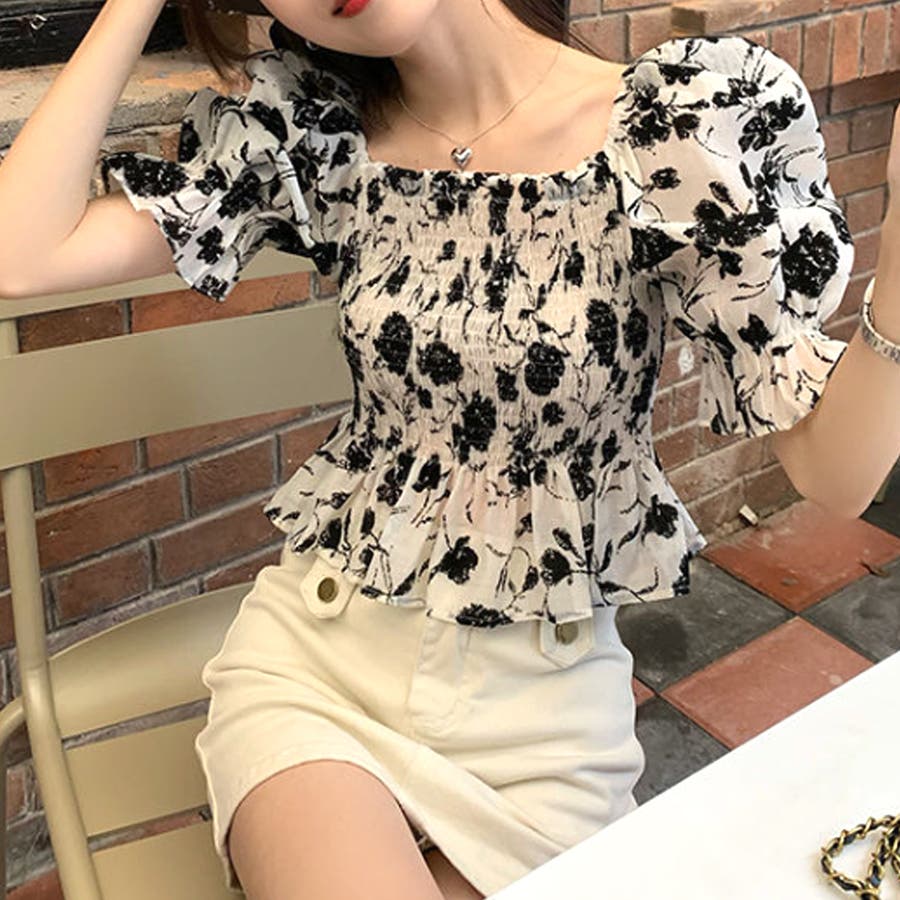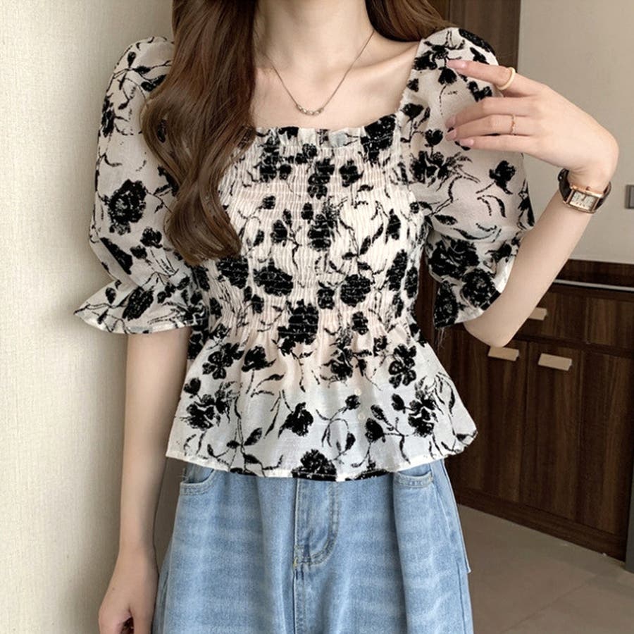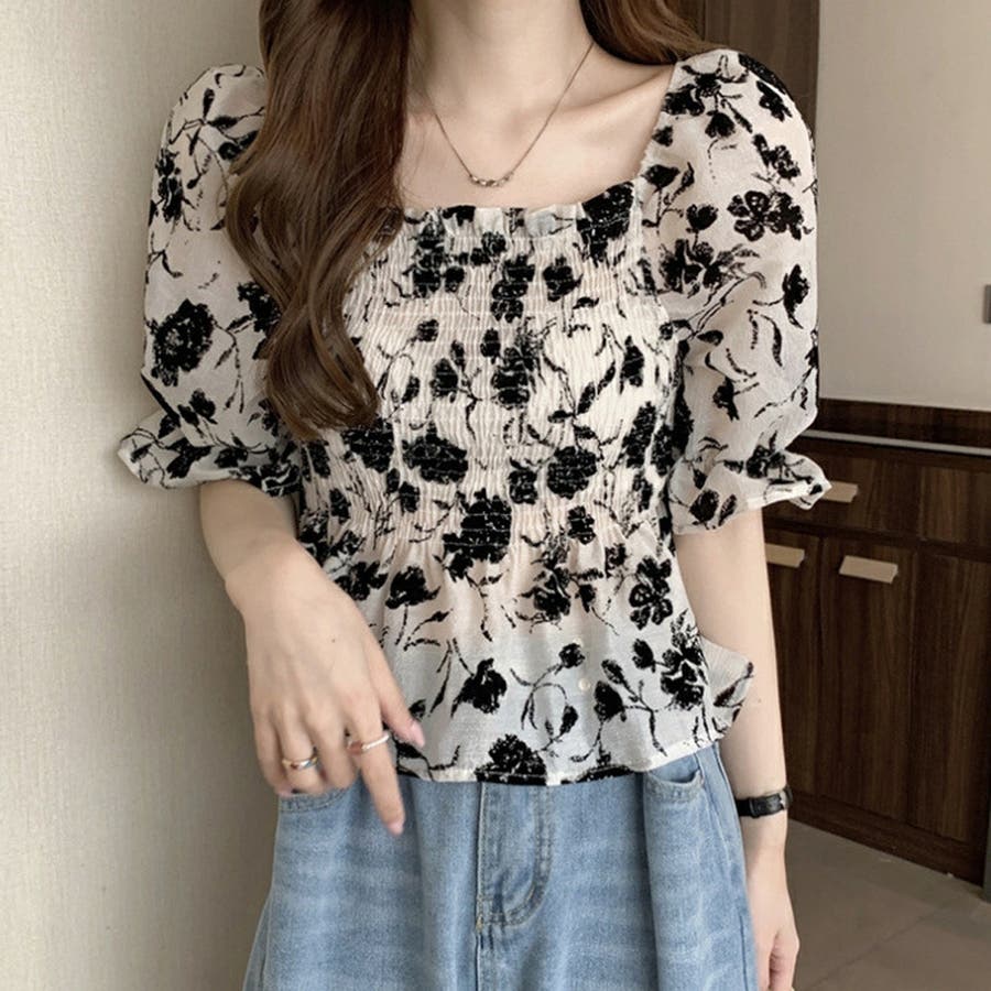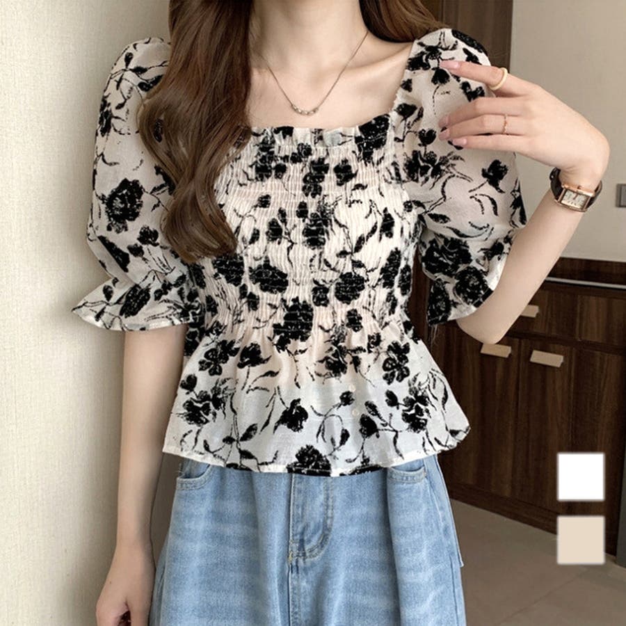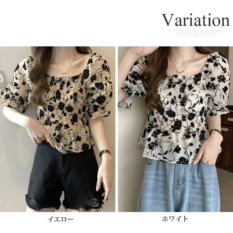 ・パフスリーブとシャーリングのバランスが絶妙で、スタイルを良く見せつつ大人可愛い雰囲気を演出します。