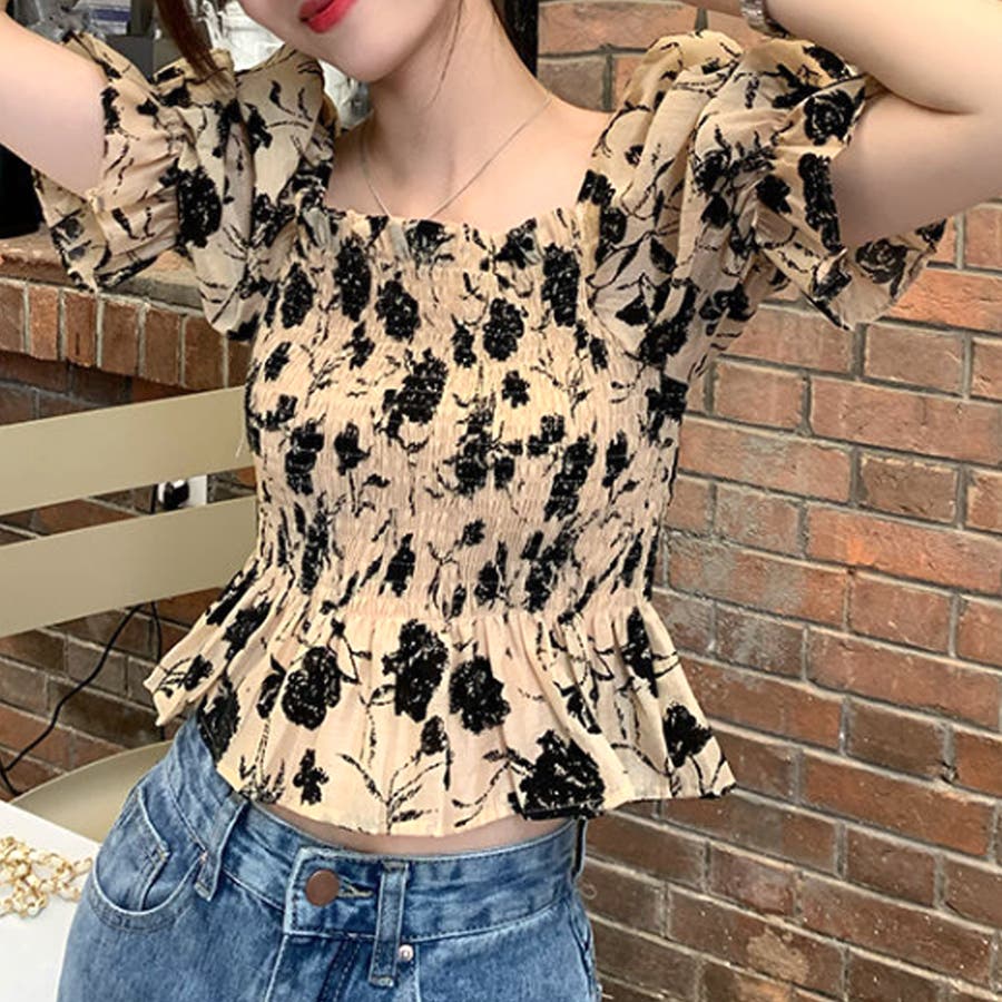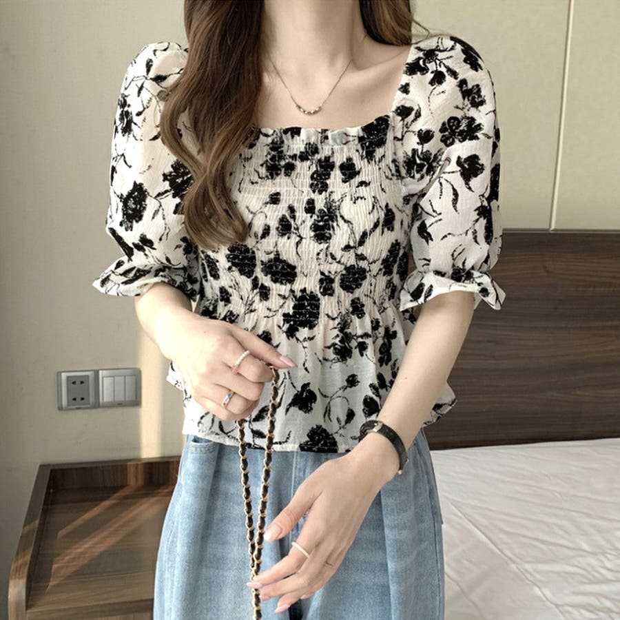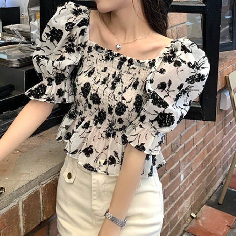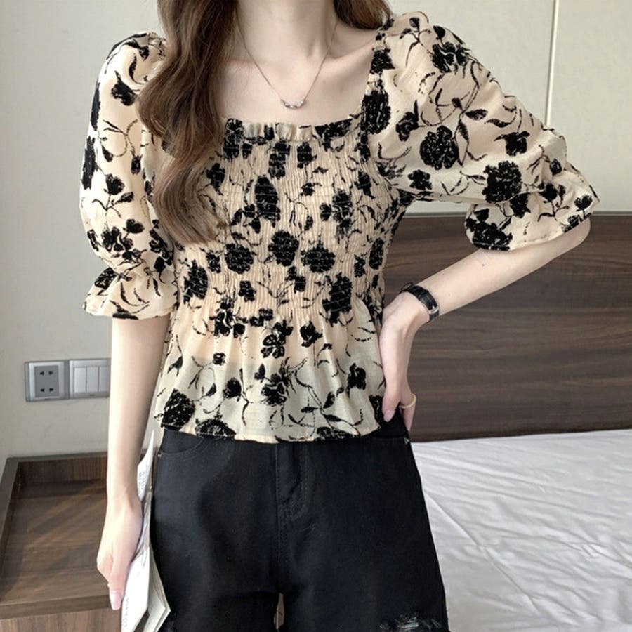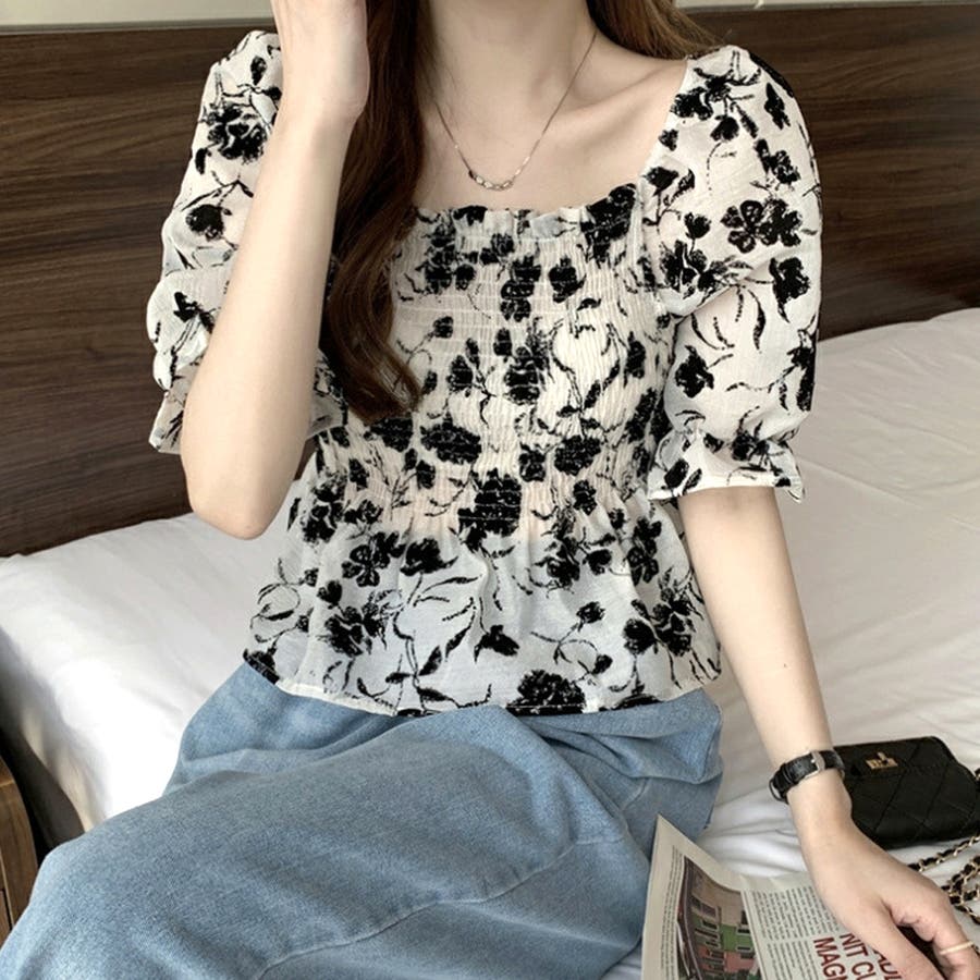 ・パフスリーブとシャーリングのバランスが絶妙で、スタイルを良く見せつつ大人可愛い雰囲気を演出します。
