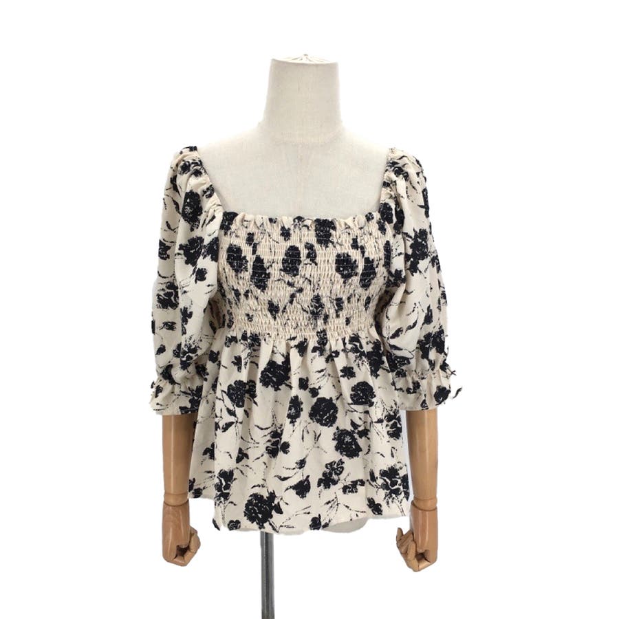 こういうパフスリーブやシャーリングデザインのブラウスが好きなので一目惚れ。
