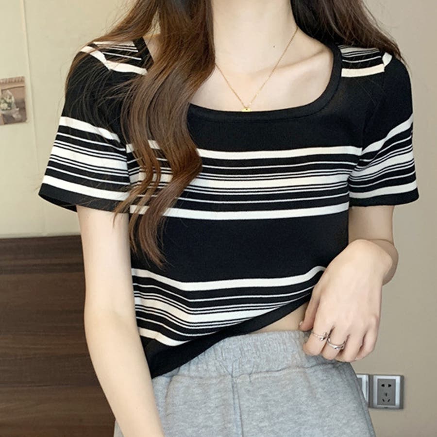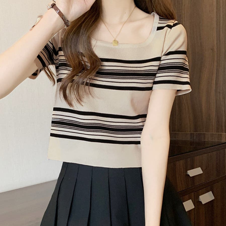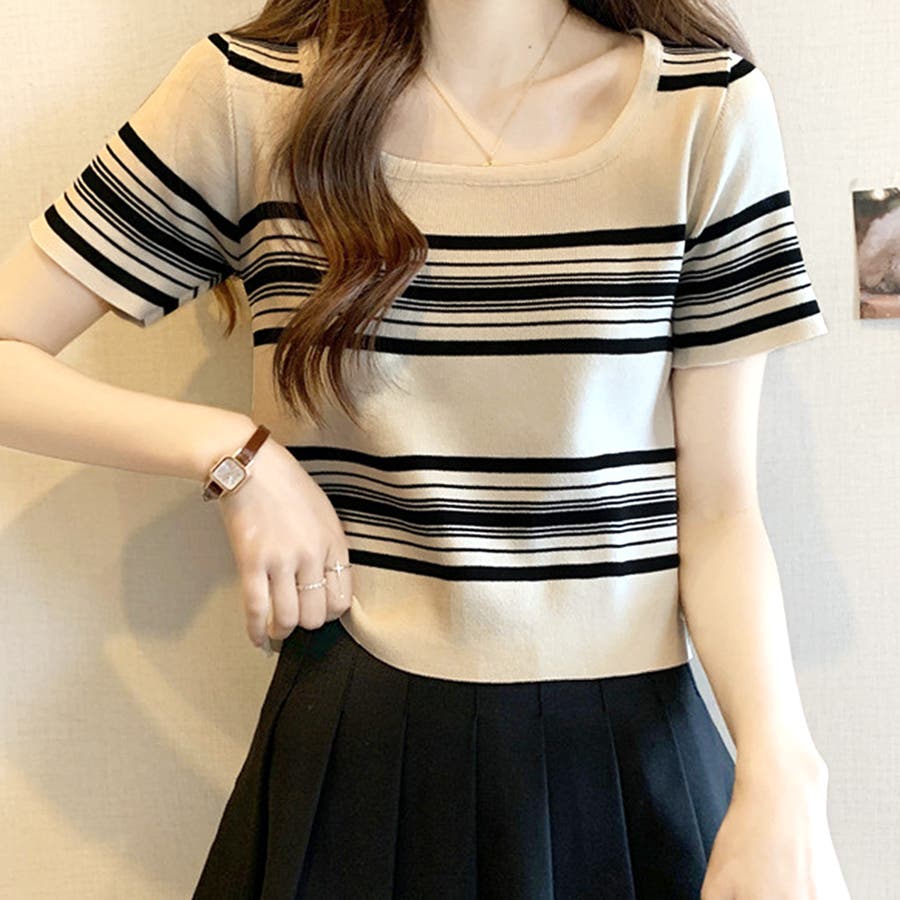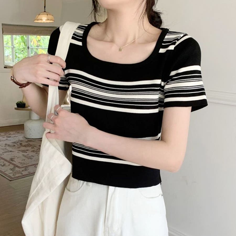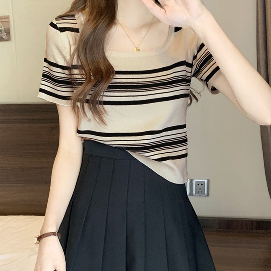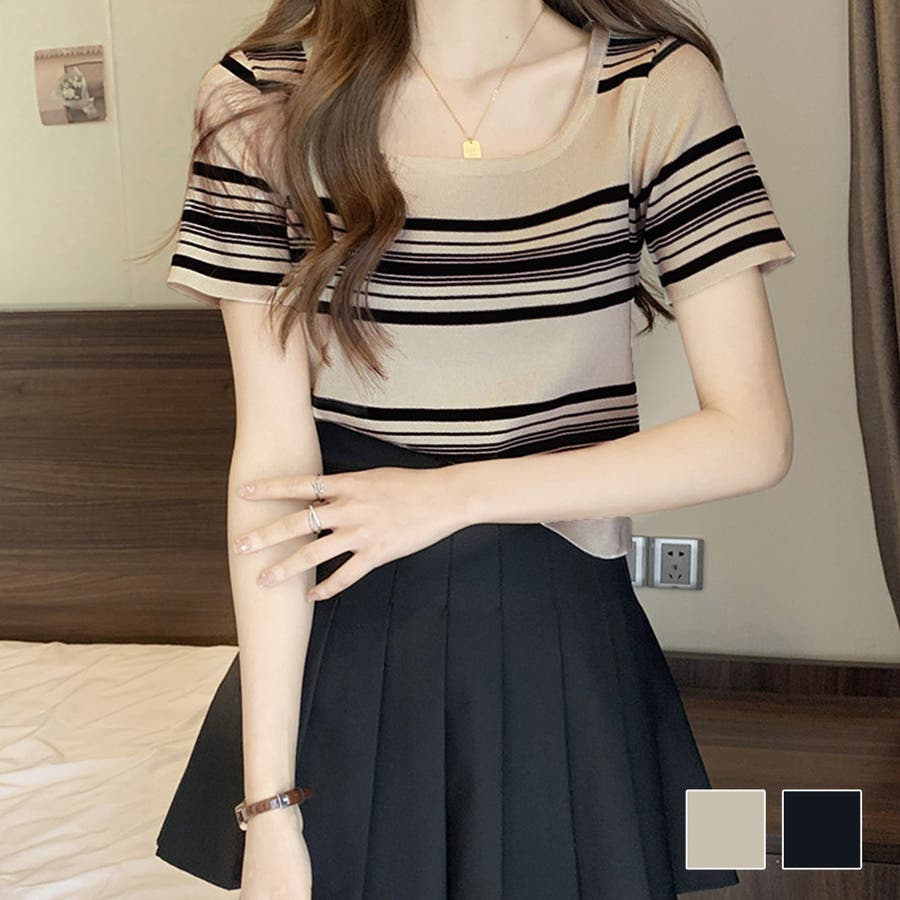スクエアネック半袖ニット 韓国ファッション 10代