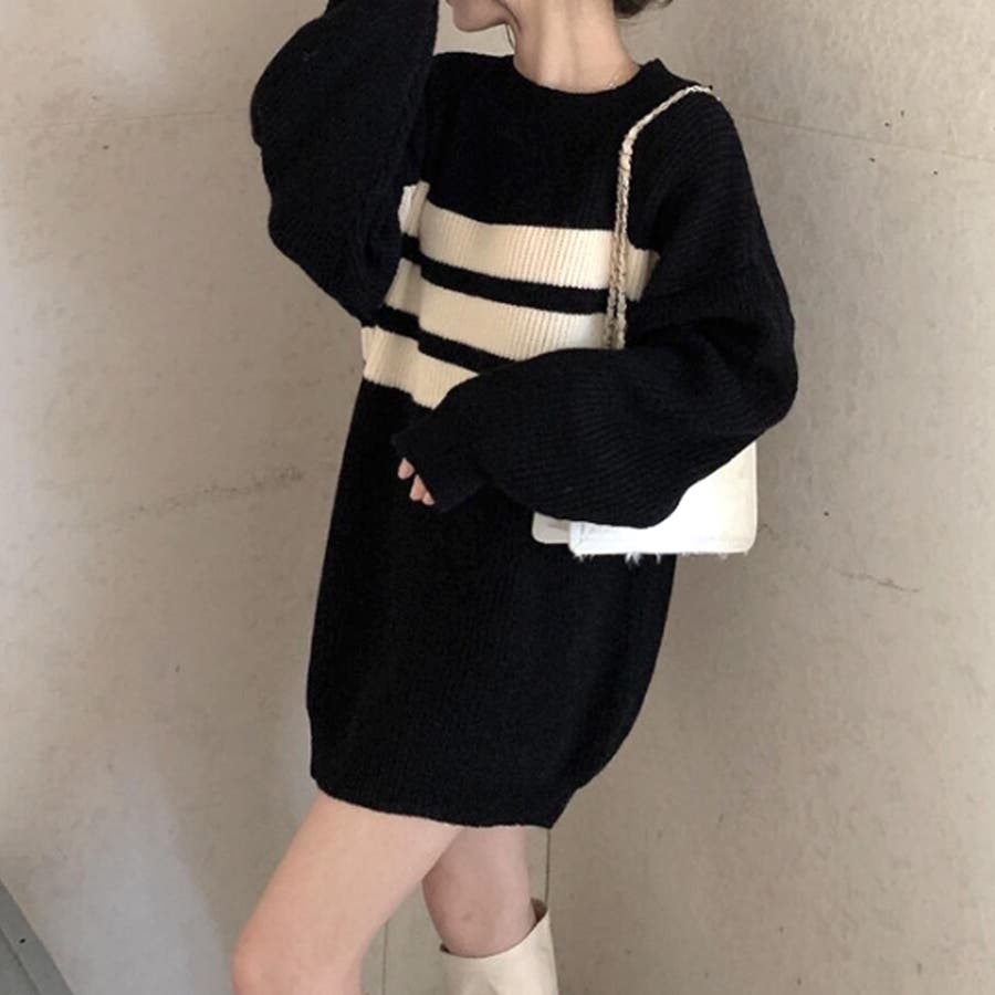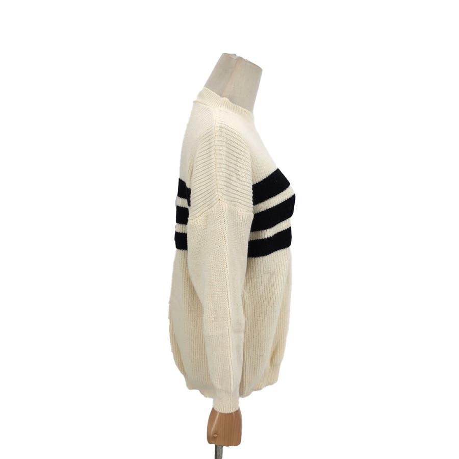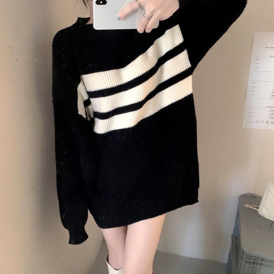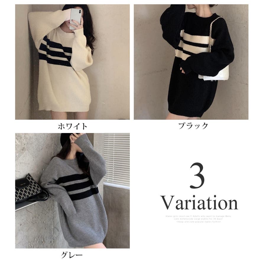 ・フロントの3本のポイントラインが、シンプルながらカジュアルで可愛いデザインのニット♪