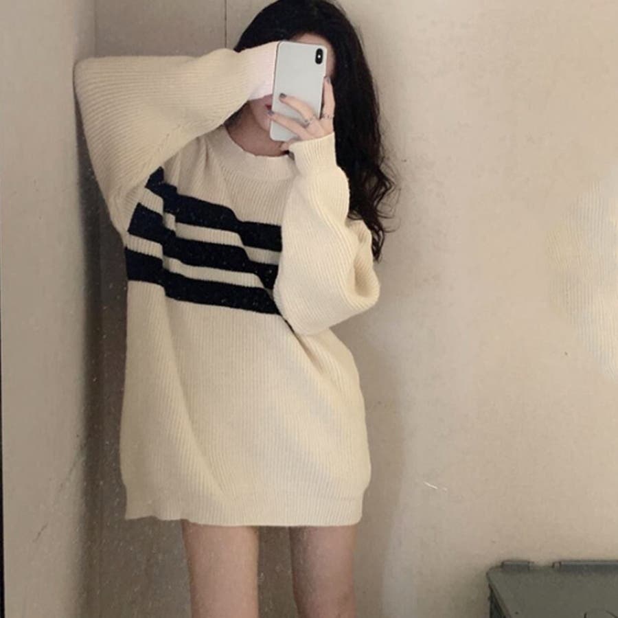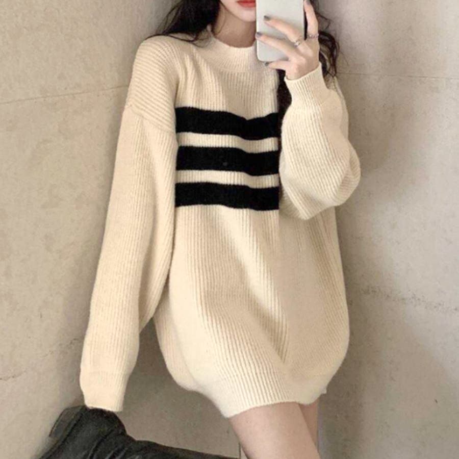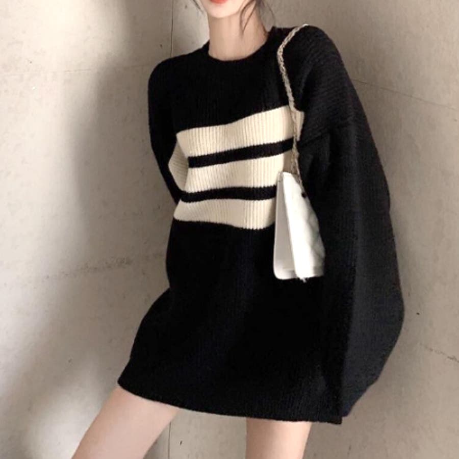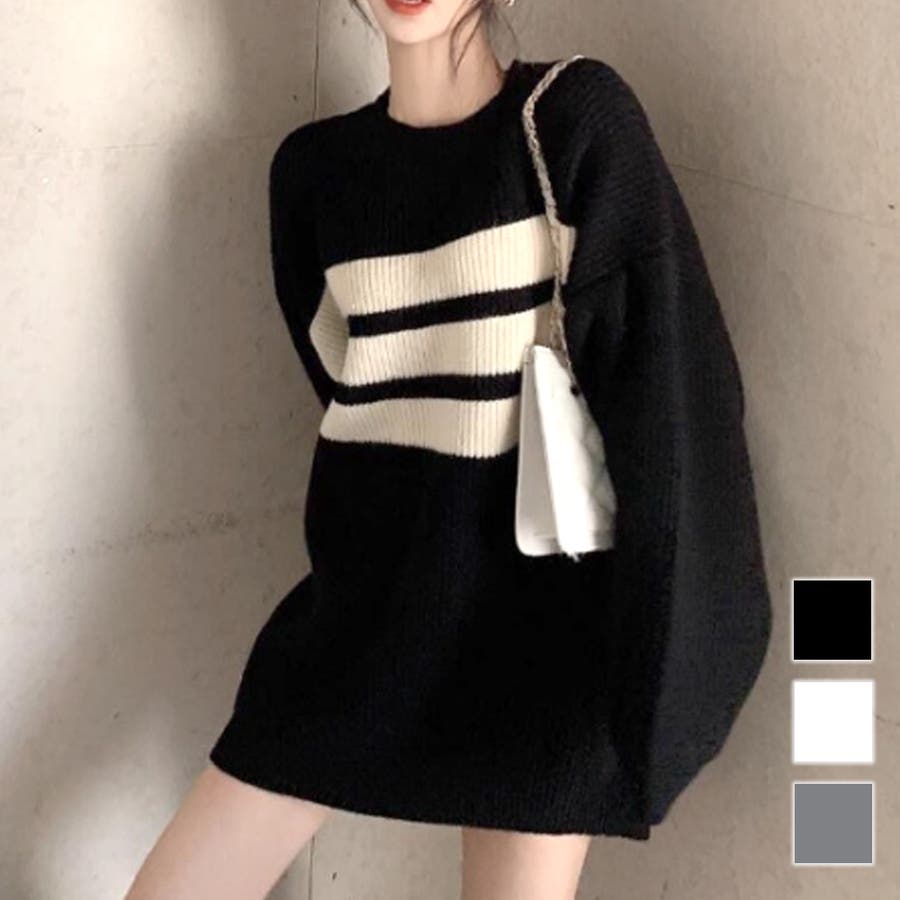 ・フロントの3本のポイントラインが、シンプルながらカジュアルで可愛いデザインのニット♪