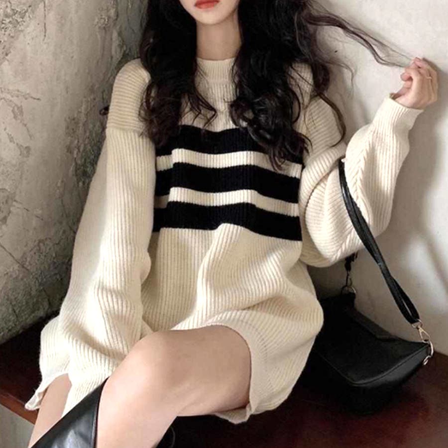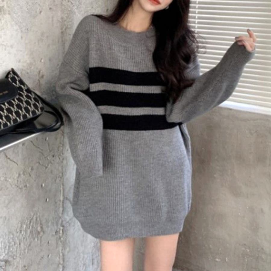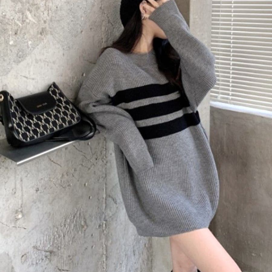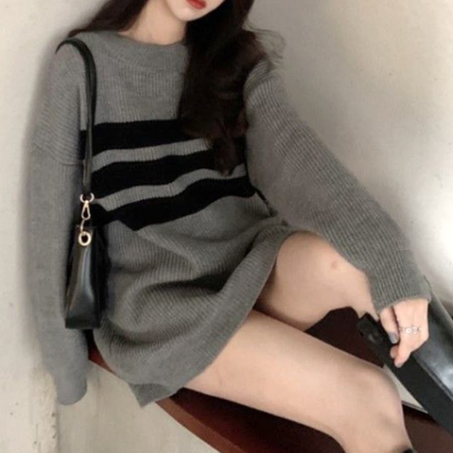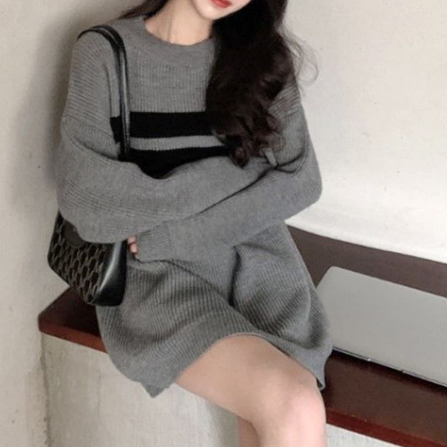 ・オーバーサイズのロングニット。レギンスやパンツに合わせてチュニックとしても、ミニワンピースとしてもお使い頂けます。