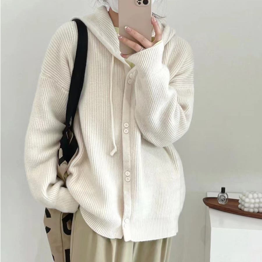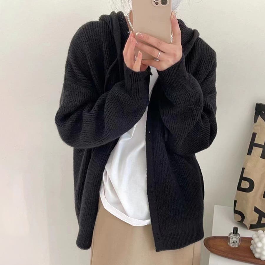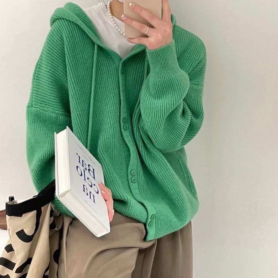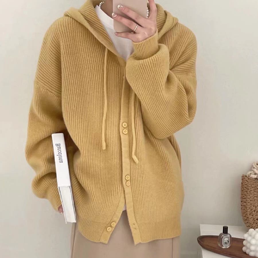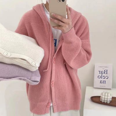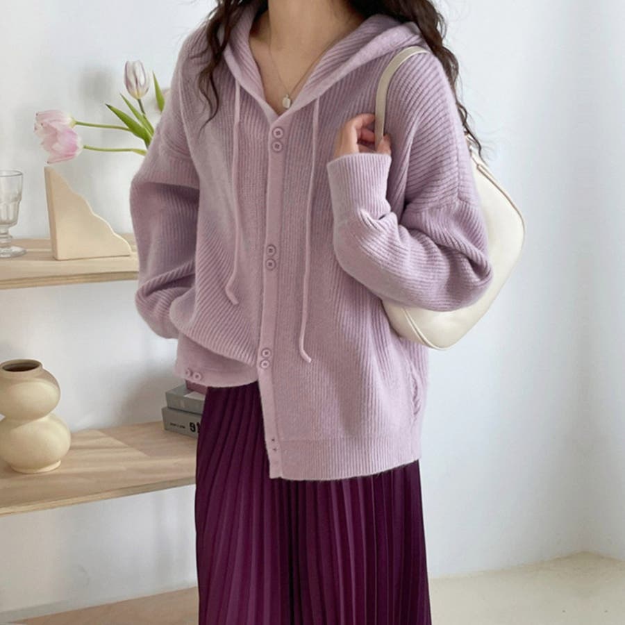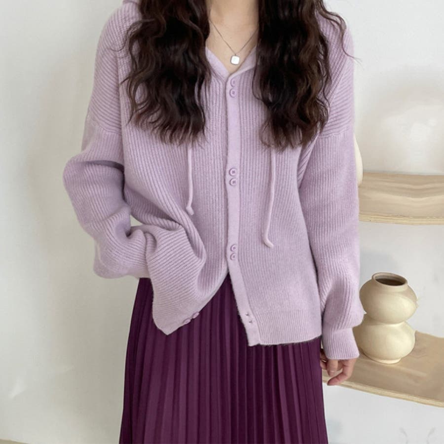 ・肌寒いときにさっと羽織れて急な雨の日にはフードもかぶれるパーカー風カーディガン