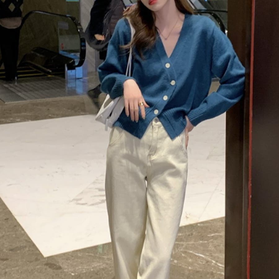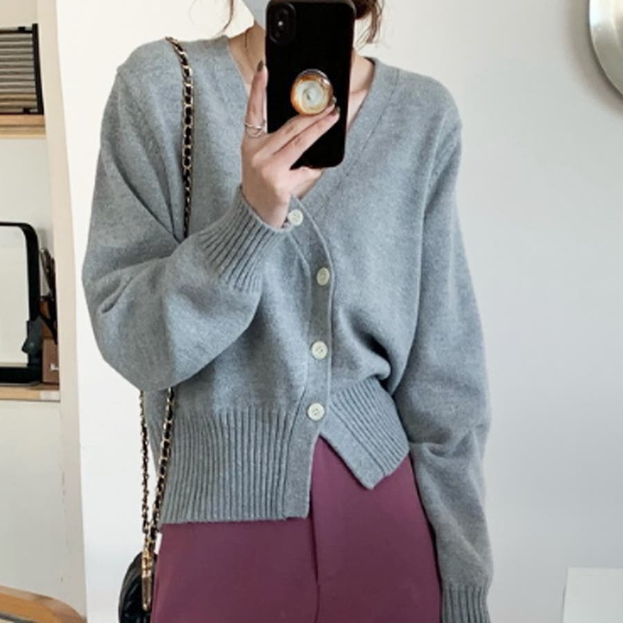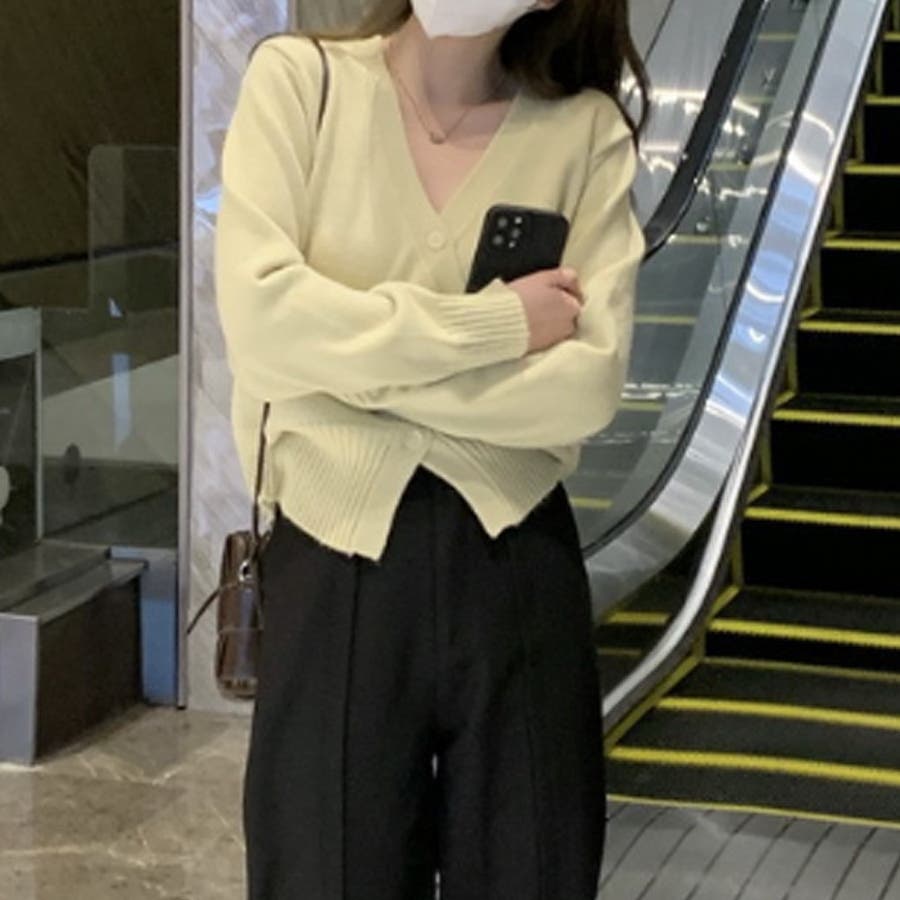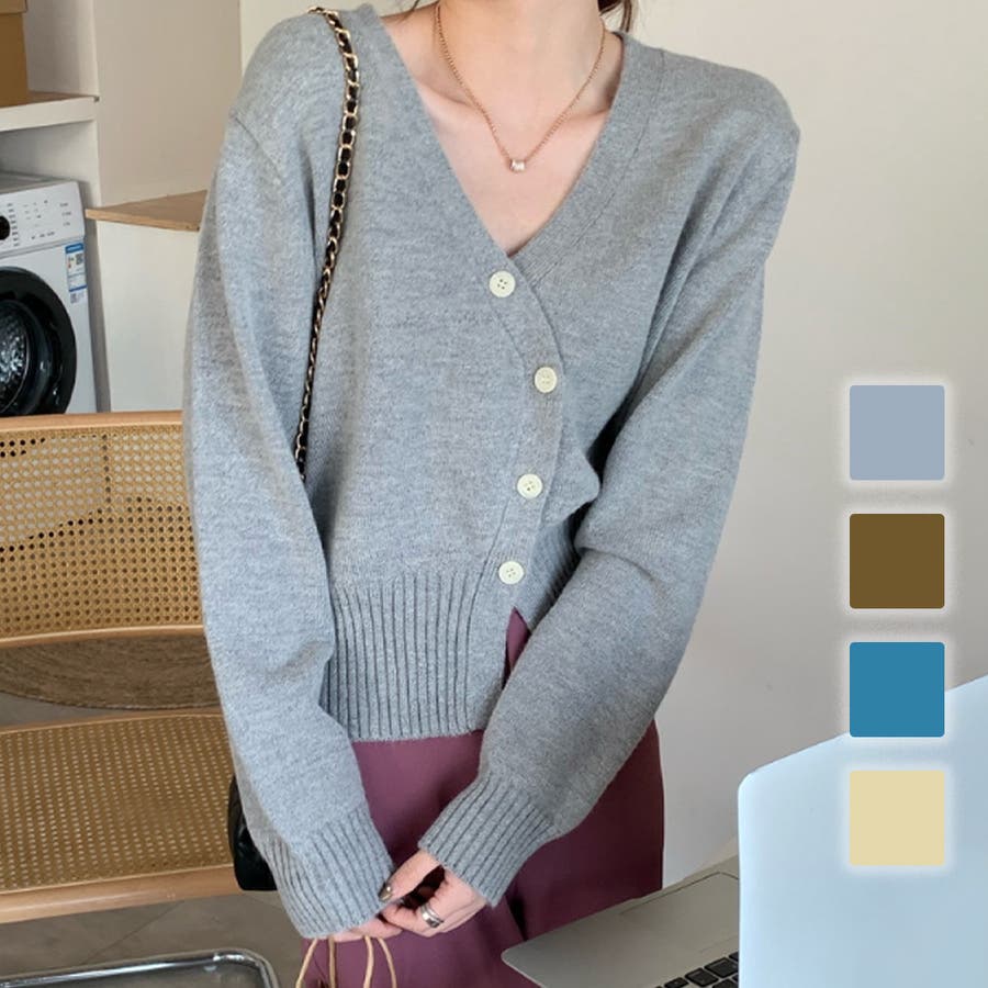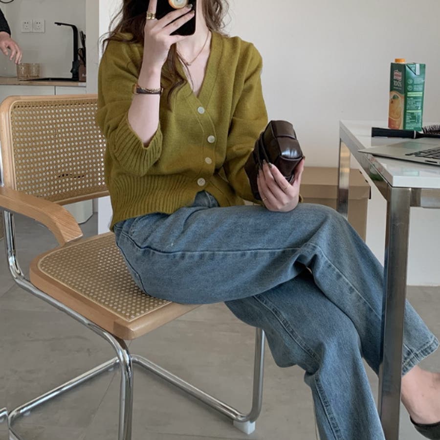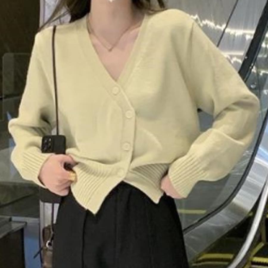 ・トレンドのクロップド丈でボタンを外せばスタイル良く脚長効果も期待できるカーディガン。