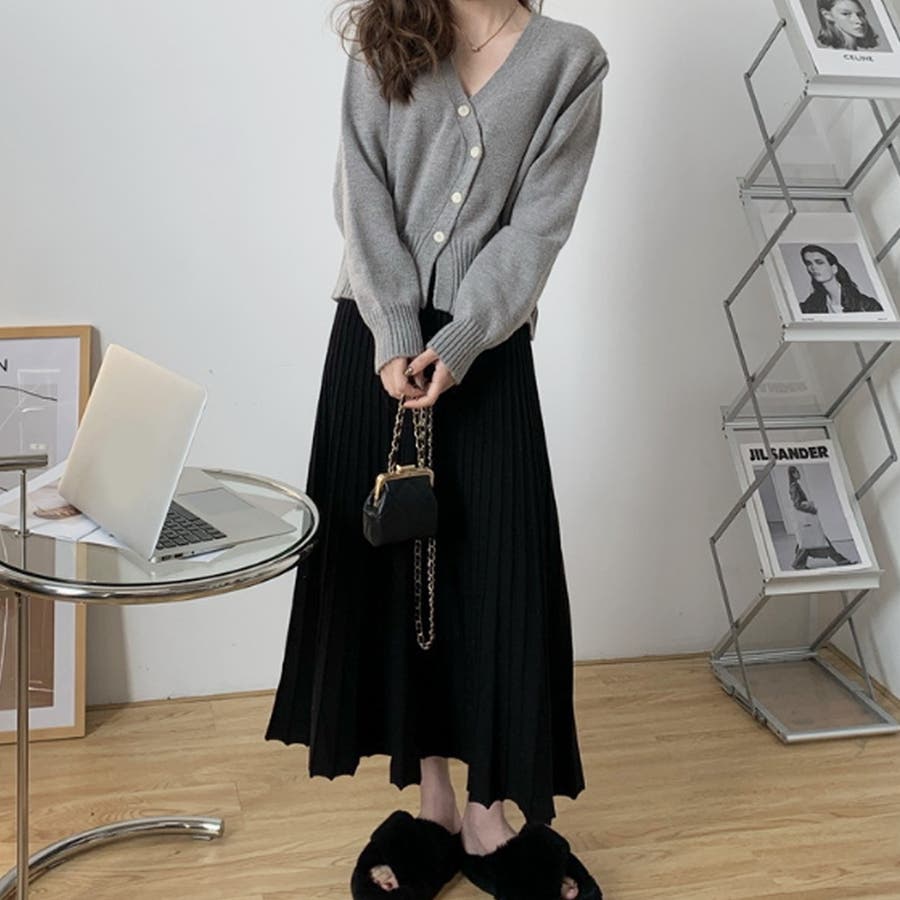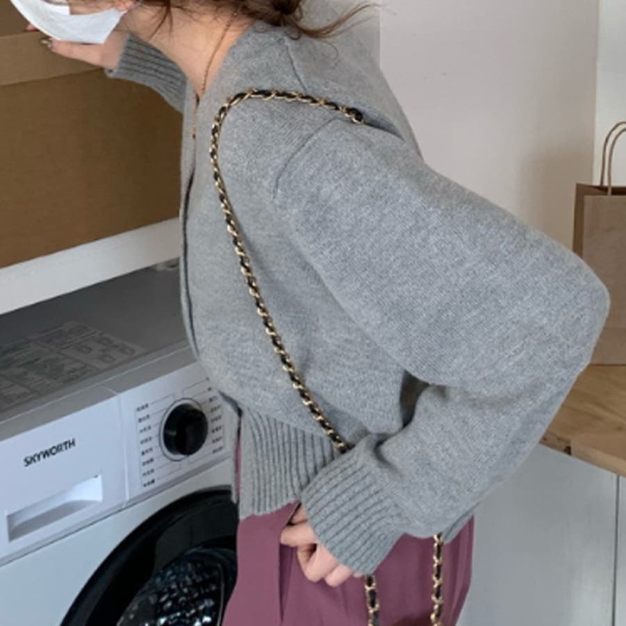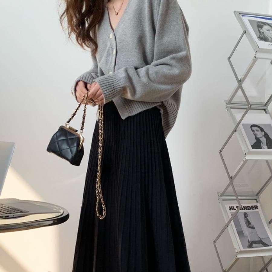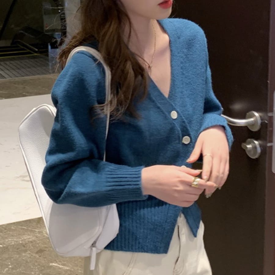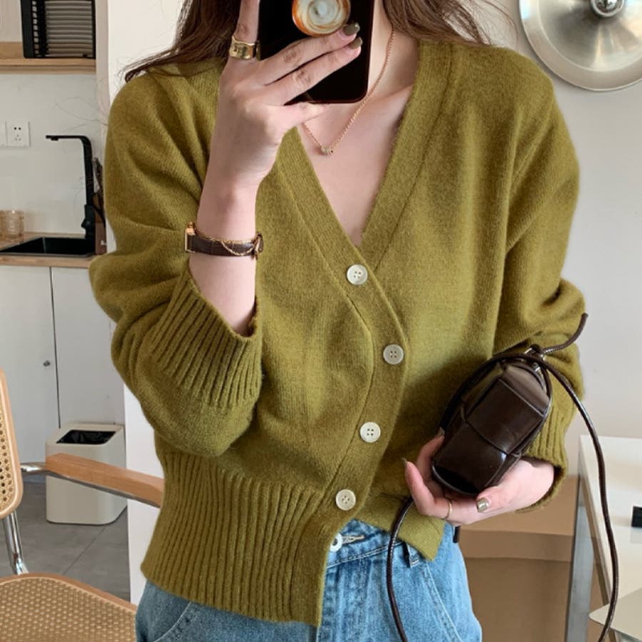 ・トレンドのクロップド丈でボタンを外せばスタイル良く脚長効果も期待できるカーディガン。