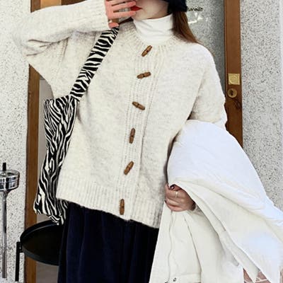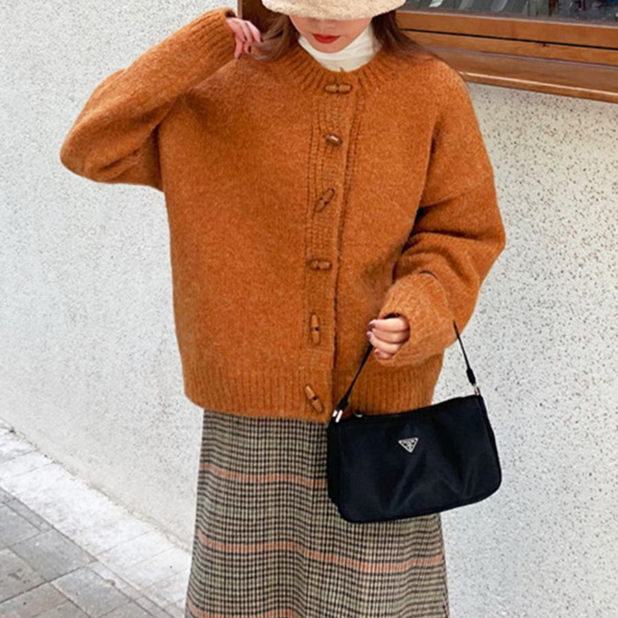 ・丁度いい丈感だから着膨れもしにくい。年齢問わず着こなせる丁度いいが詰まったデザインのカーディガン。
