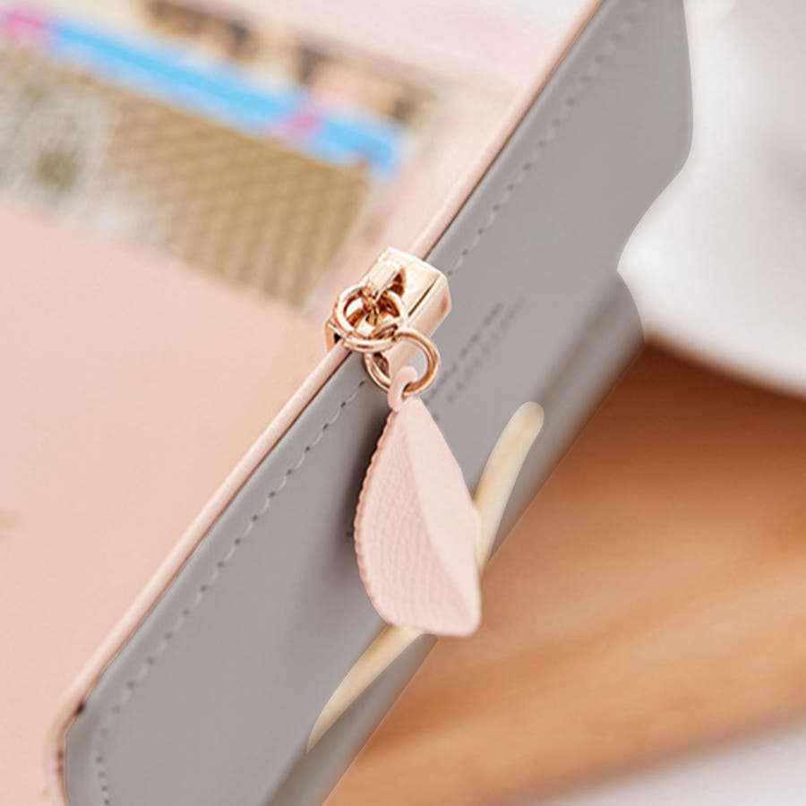 ・コンパクトに収まる三つ折りタイプ。スマホと一緒に持ち運びしやすく、気軽なお出かけでも邪魔にならない。手に収まるサイズ感◎