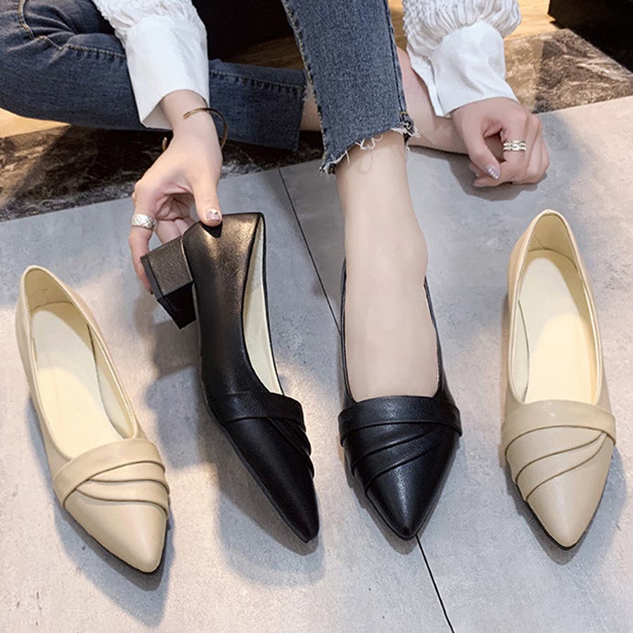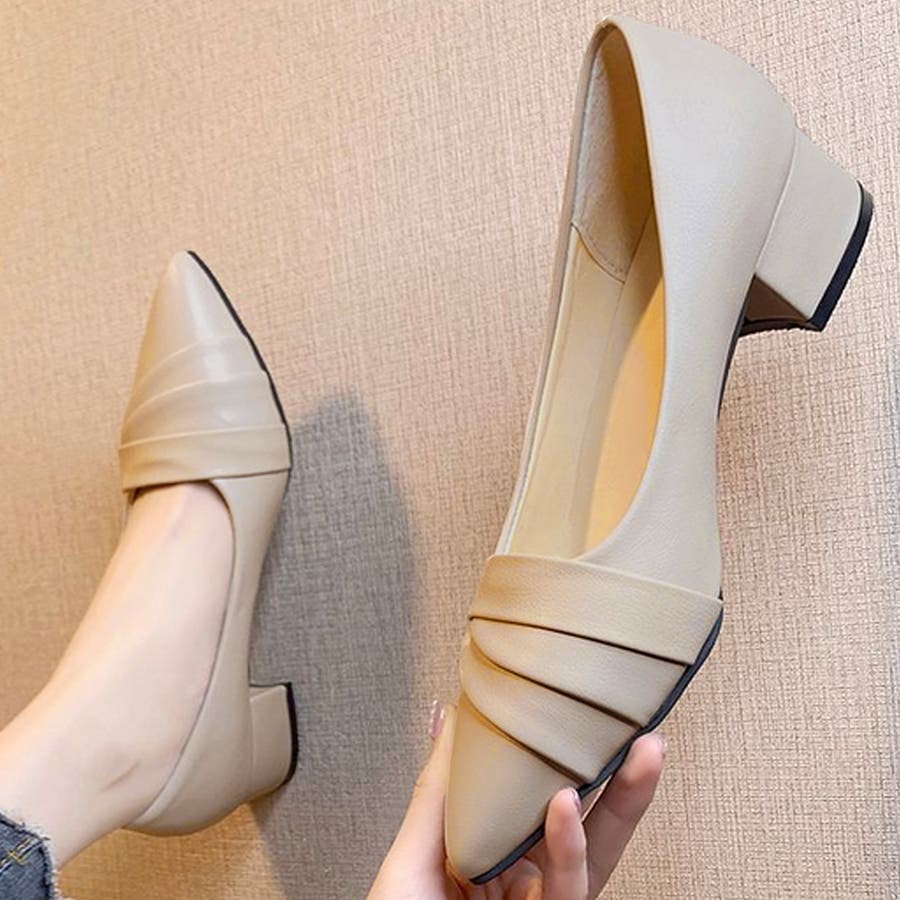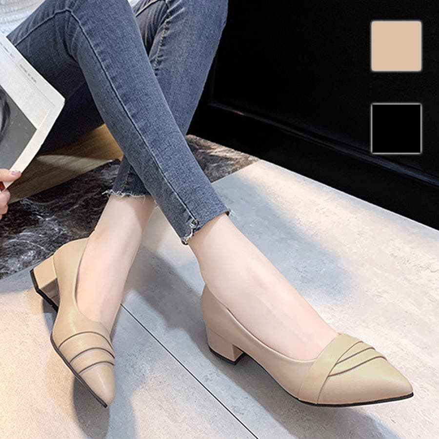 ・シンプルながらつま先にアクセントのあるカシュクール風デザインがエレガントなパンプスです。