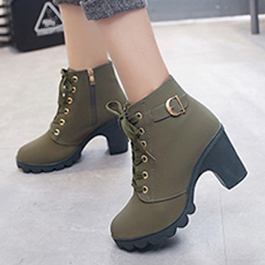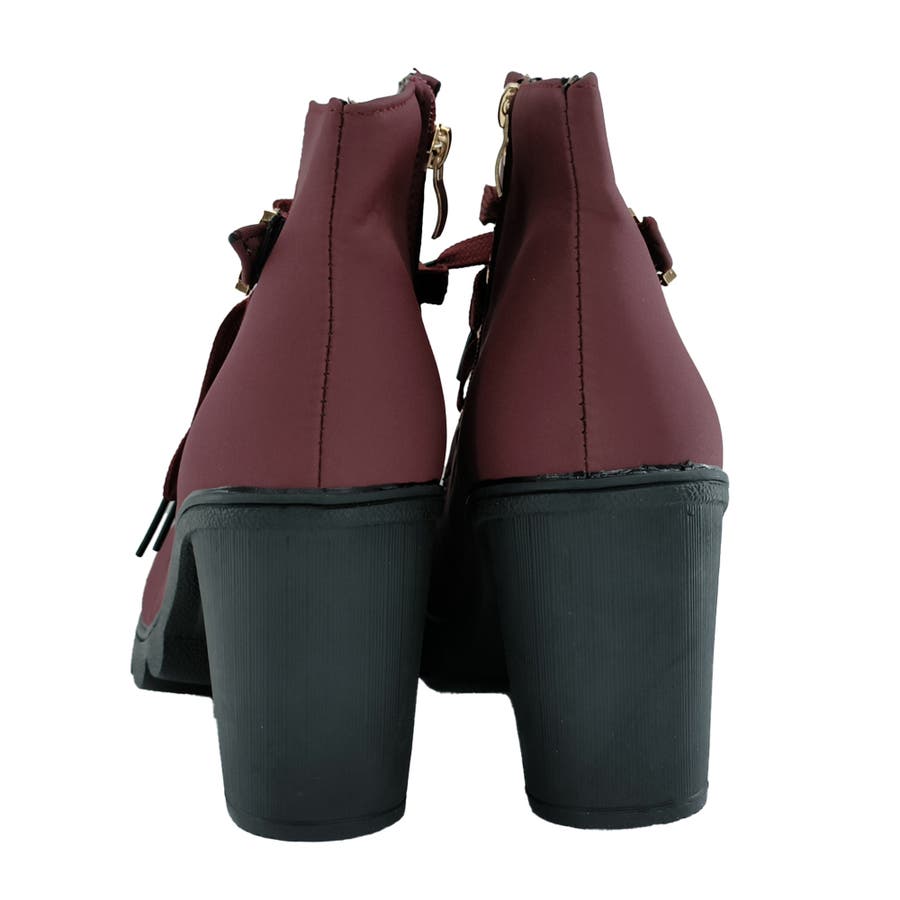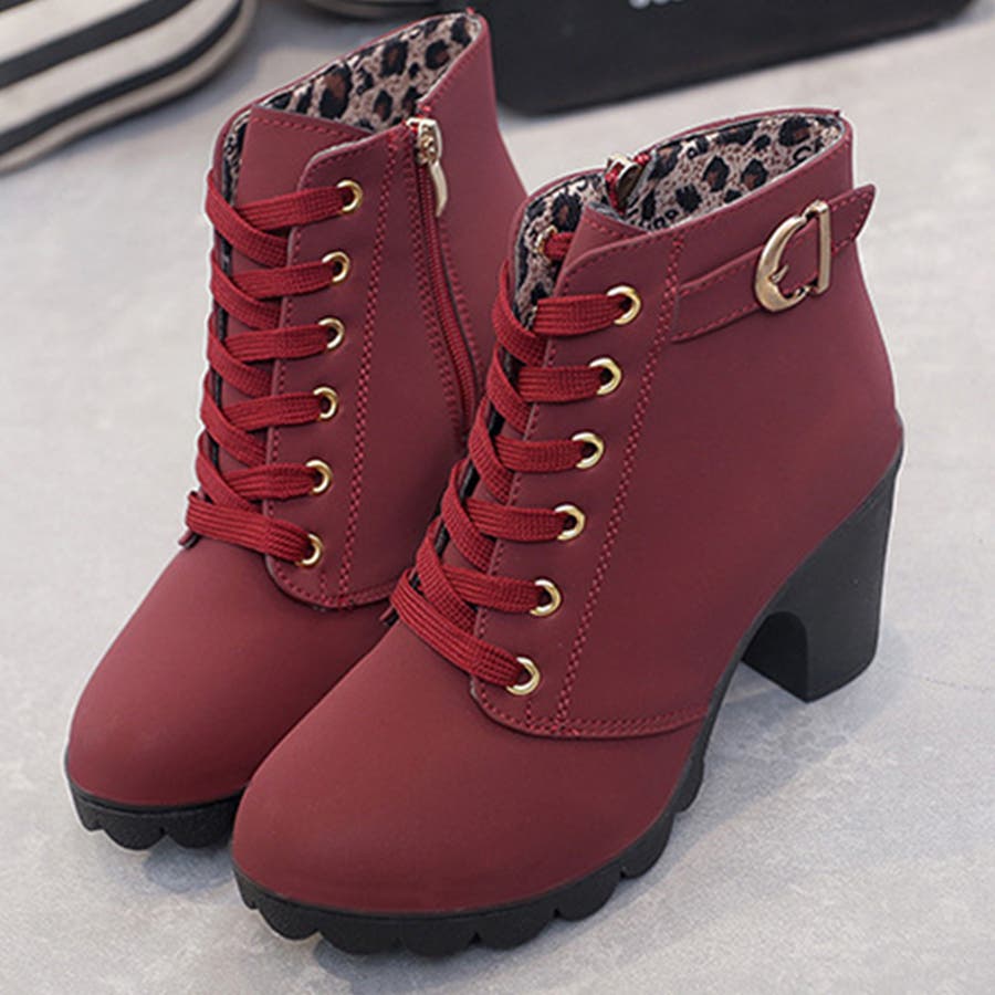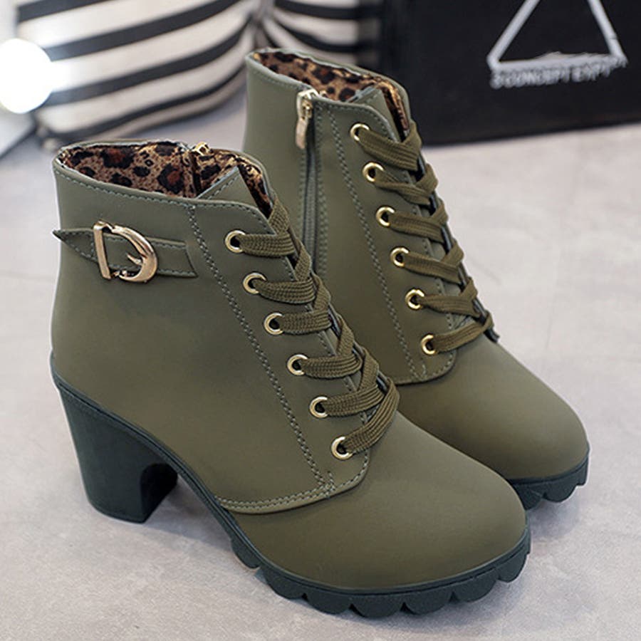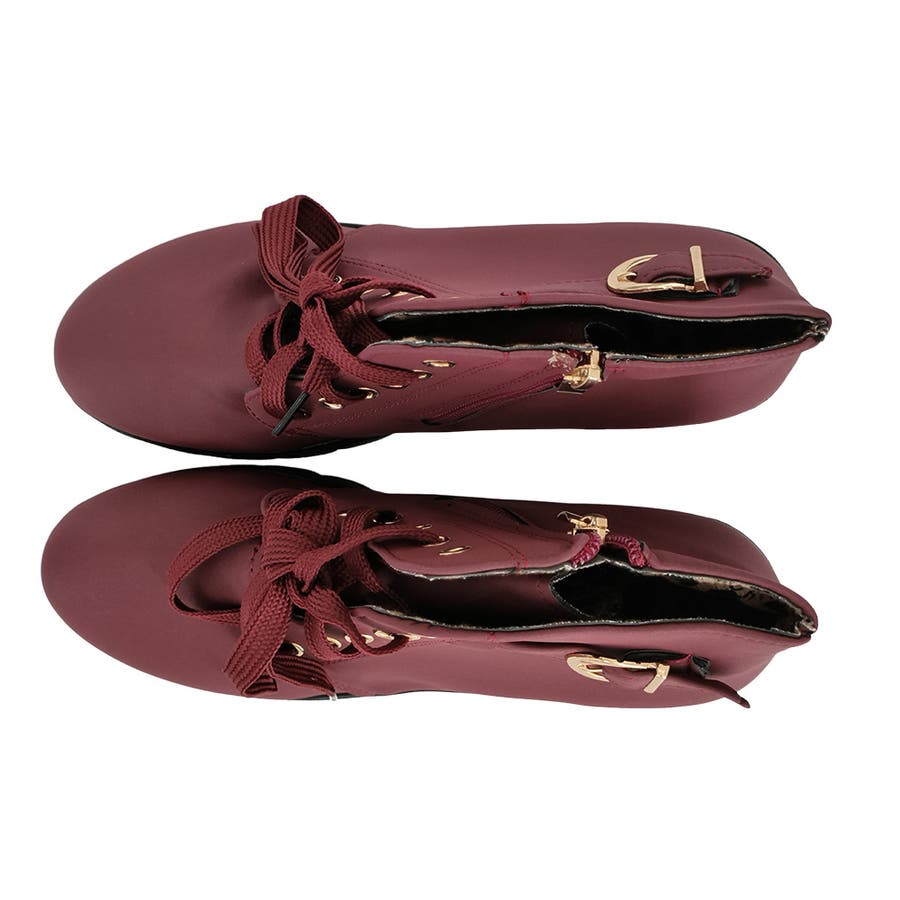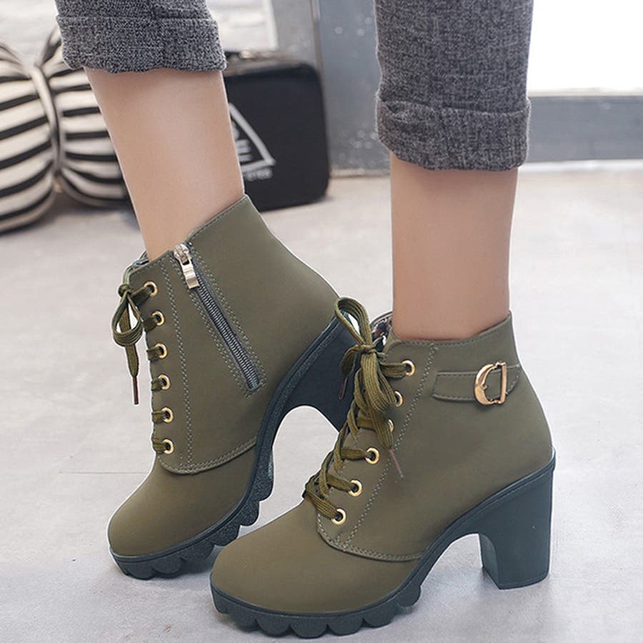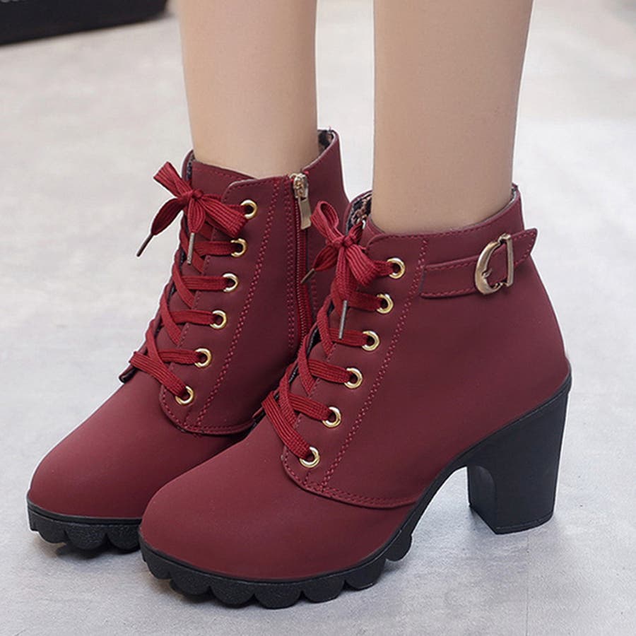 ・安定感抜群の太めヒールが特徴の編み上げショートブーツ。