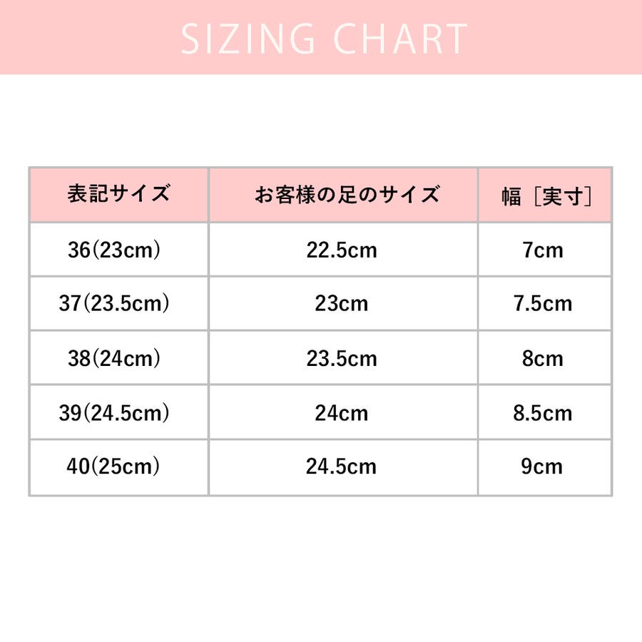 | サイズ | 36(23cm) / 37(23.5cm) / 38(24cm) / 39(24.5cm) / 40(25cm) |