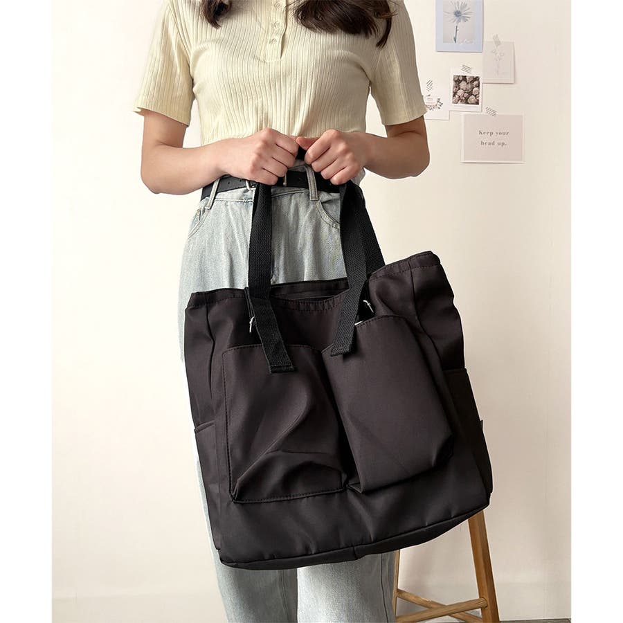 ・シンプルで洗練されたデザインが特徴のトートバッグ。日常使いにぴったりなサイズ感で、軽量で使いやすさ抜群です♪