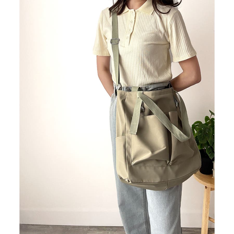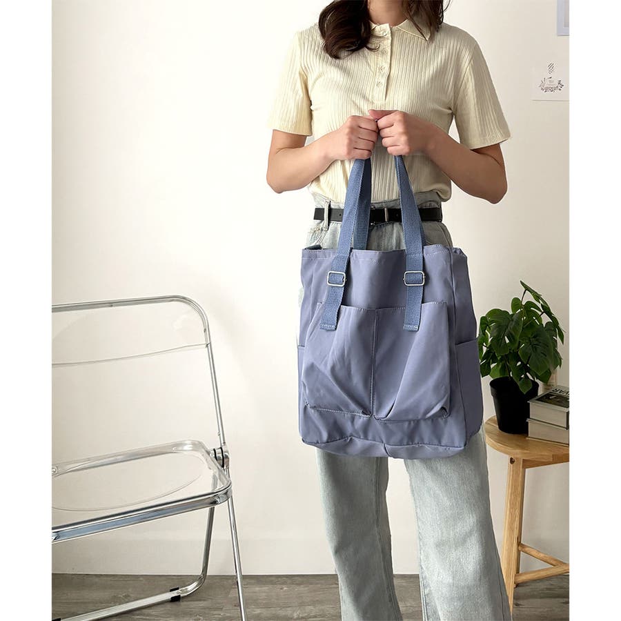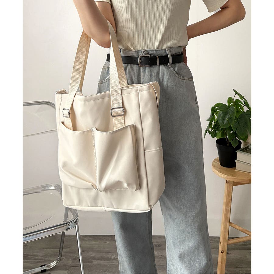 ・前面のポケットがアクセントになり、収納力も充実・スマートフォンや小物をサッと取り出せて便利◎