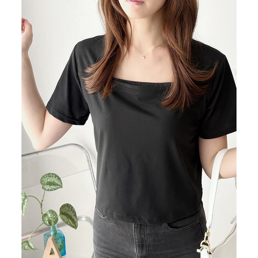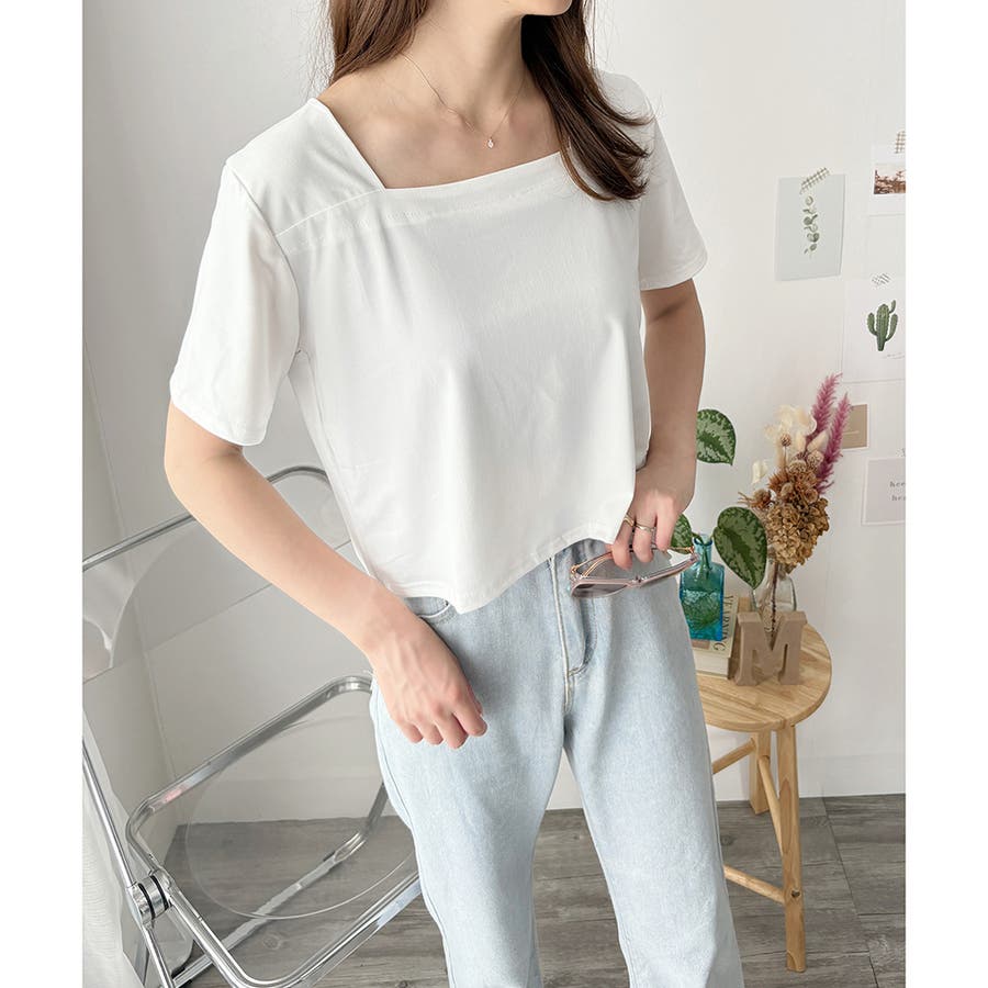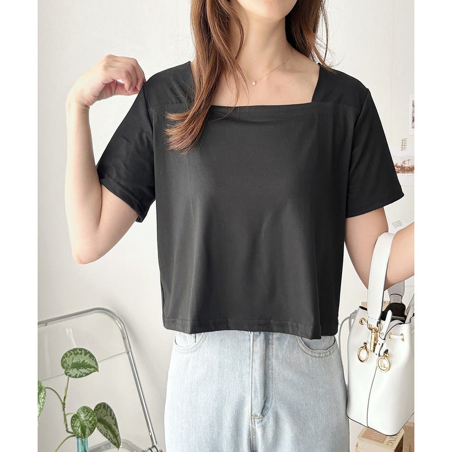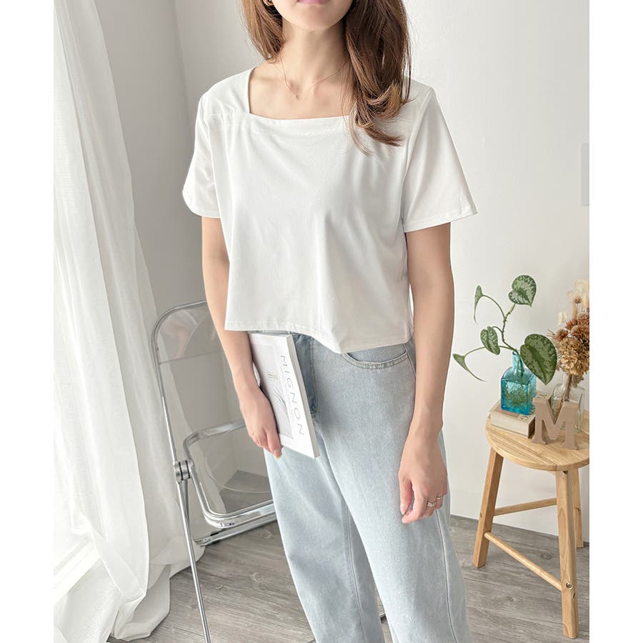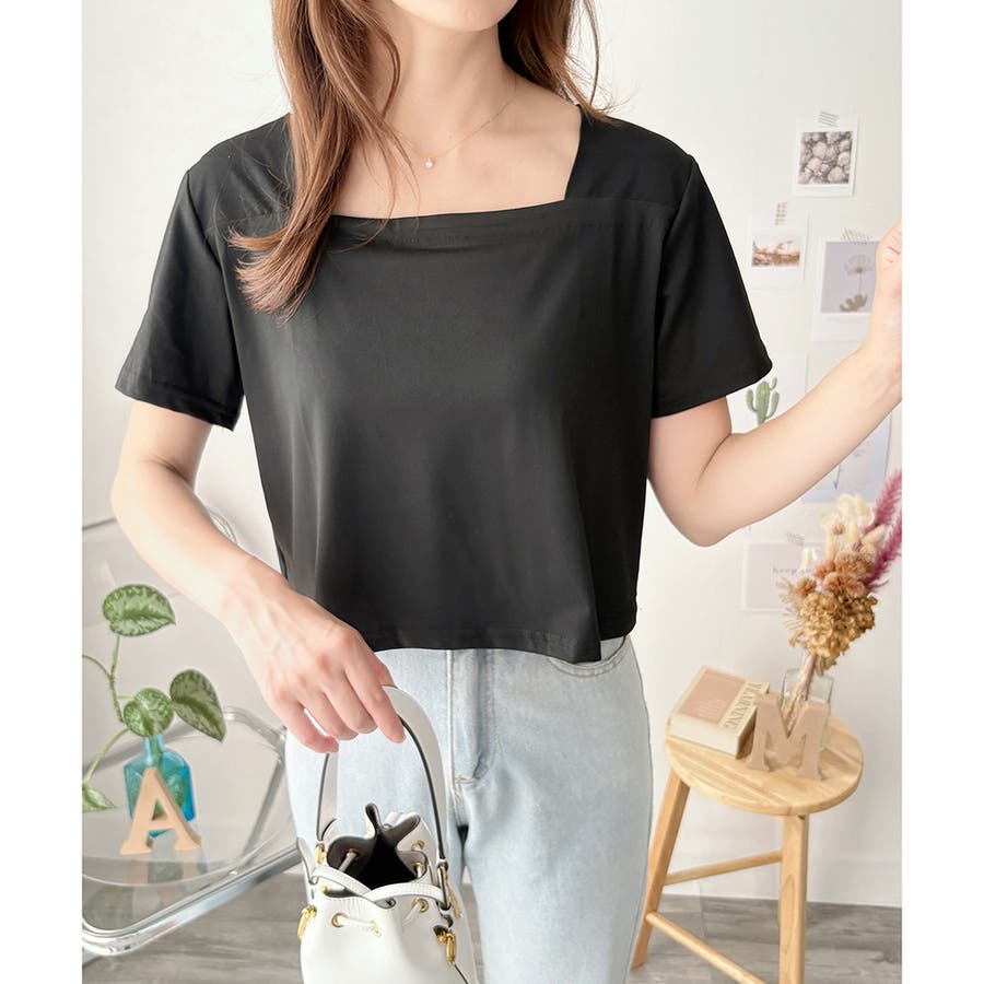 スクエアネックとコンパクトな丈感が、シンプルなのにこなれた印象に。