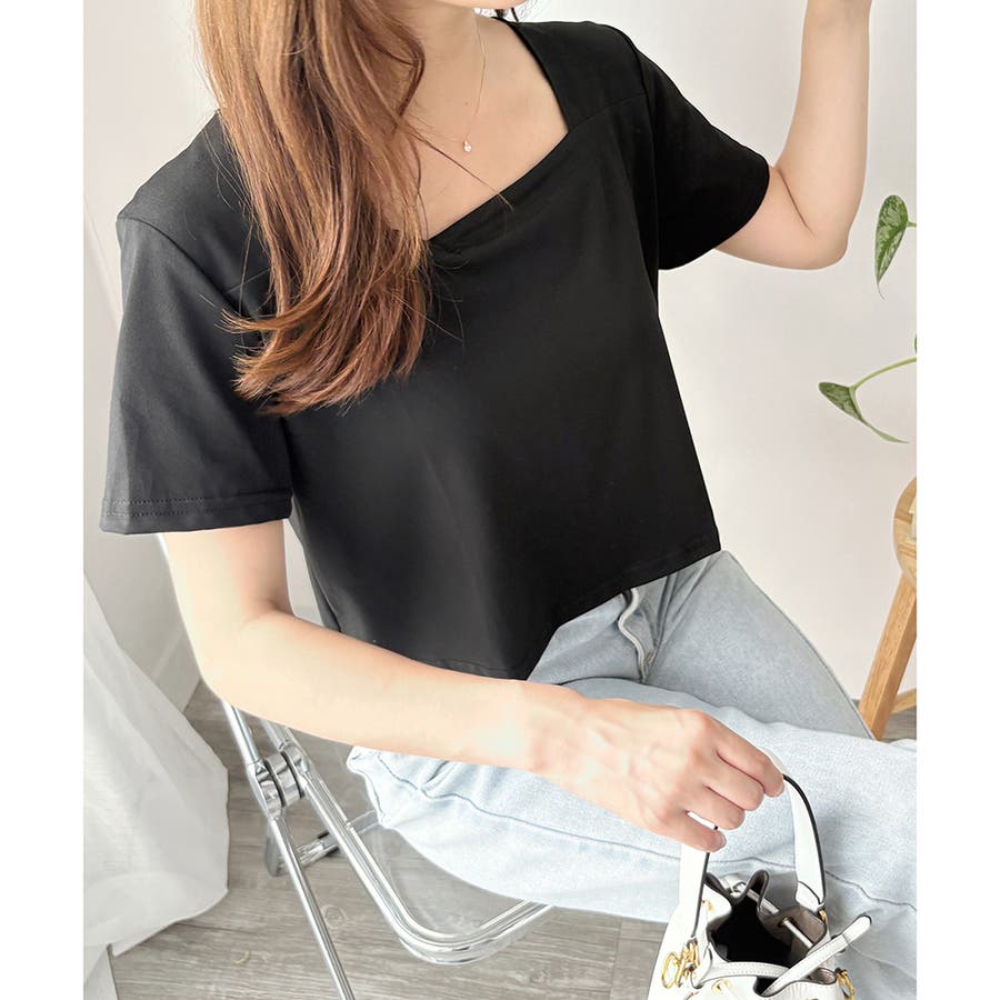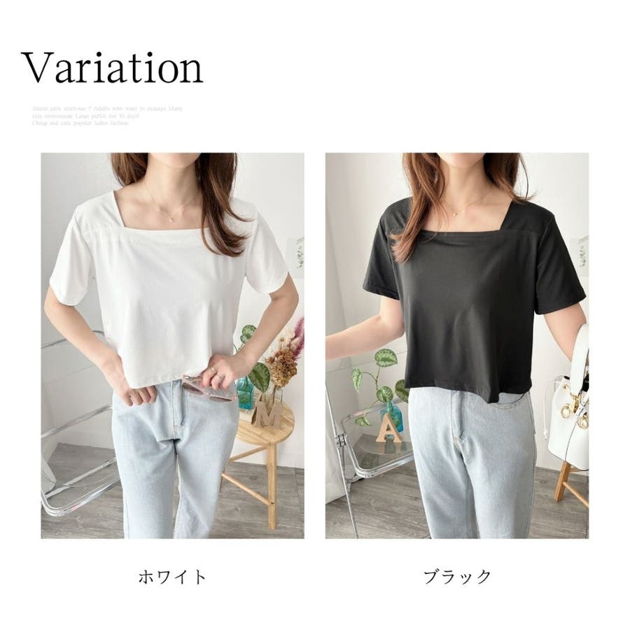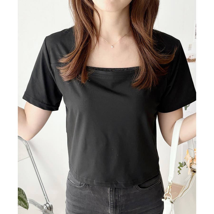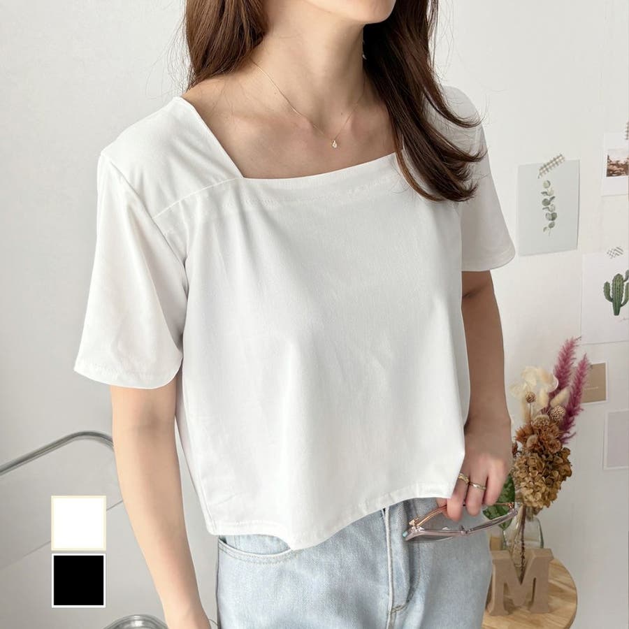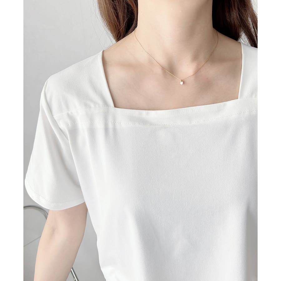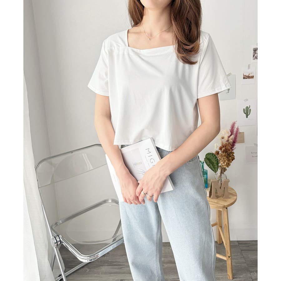 スクエアネックとコンパクトな丈感が、シンプルなのにこなれた印象に。