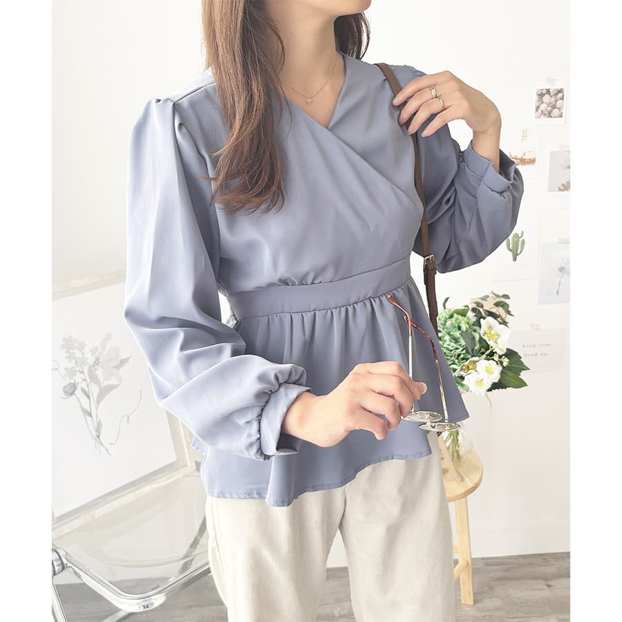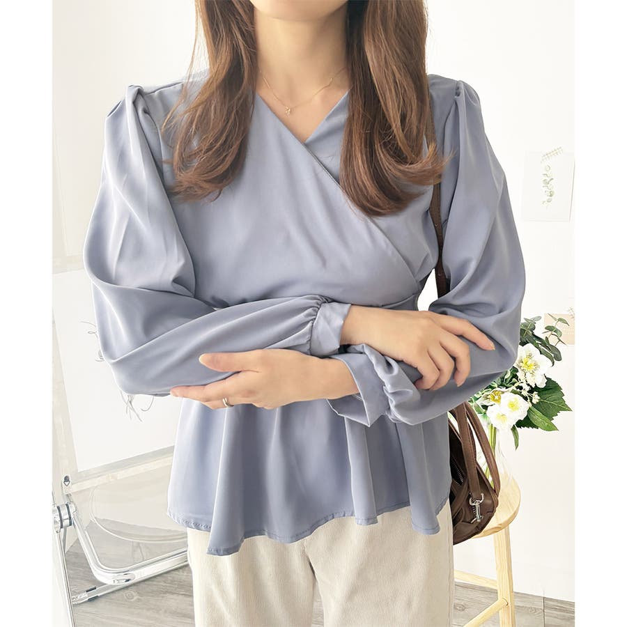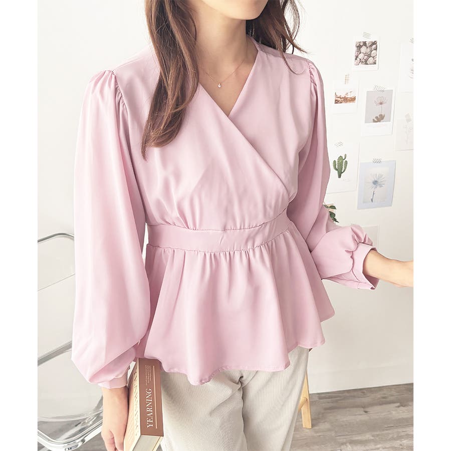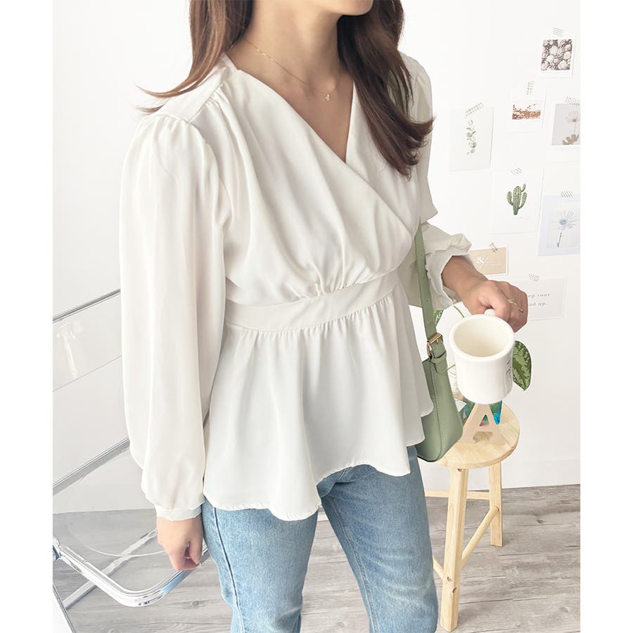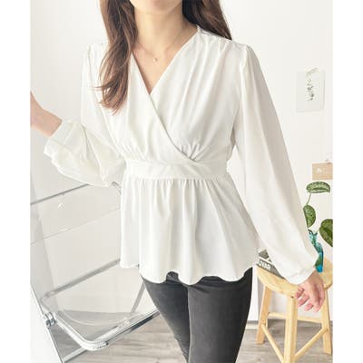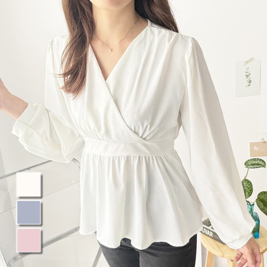 カシュクール風の胸元と、キュッと絞られたウエストデザインが女性らしさを引き立てます。