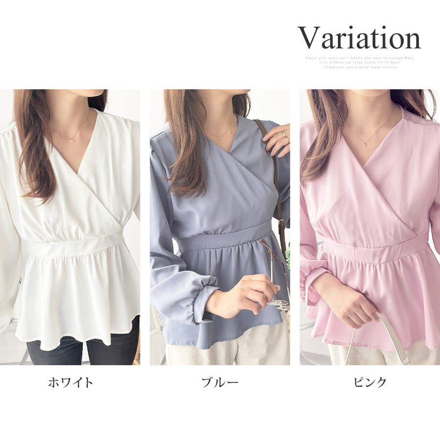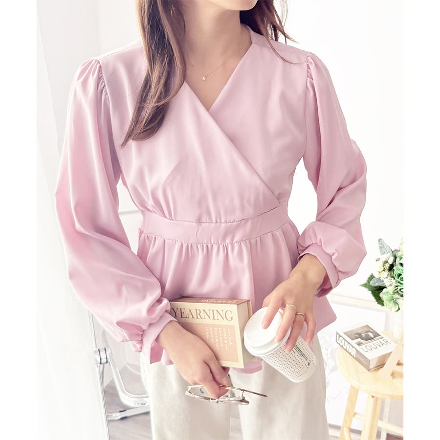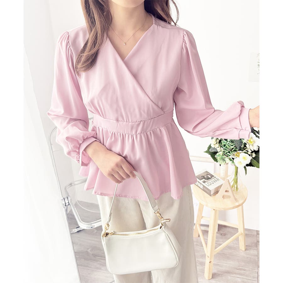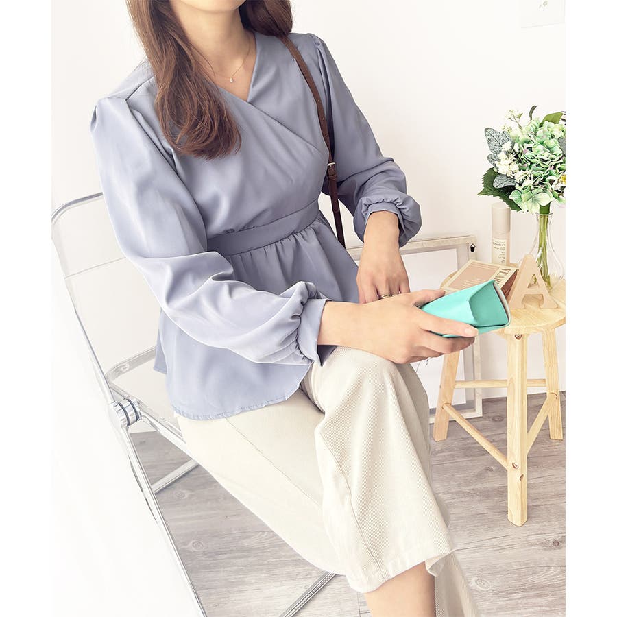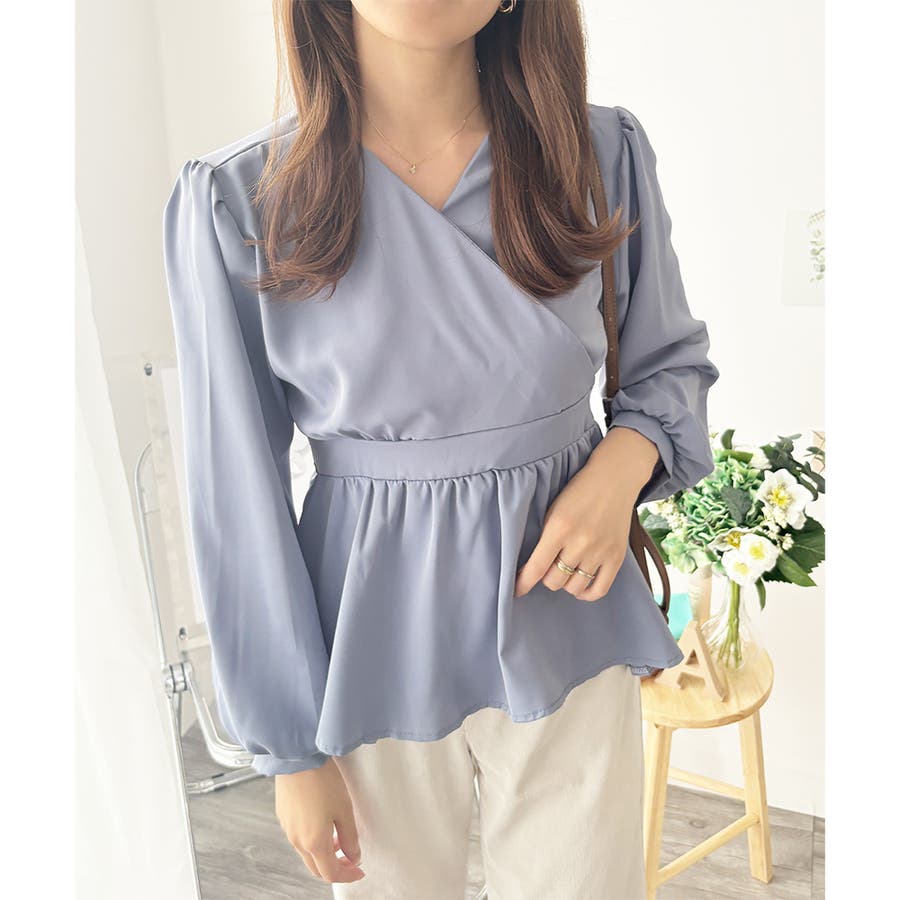 カシュクール風の胸元と、キュッと絞られたウエストデザインが女性らしさを引き立てます。